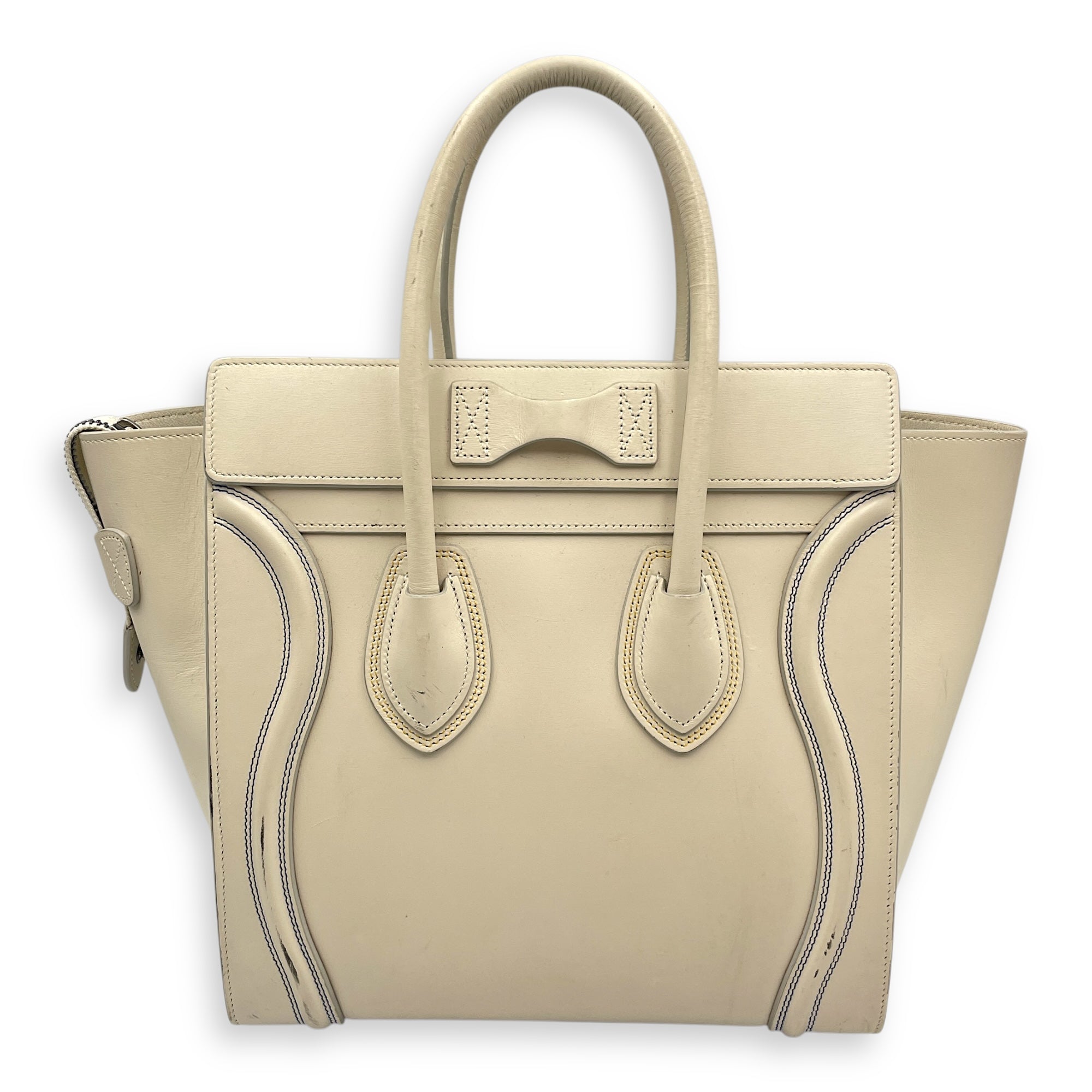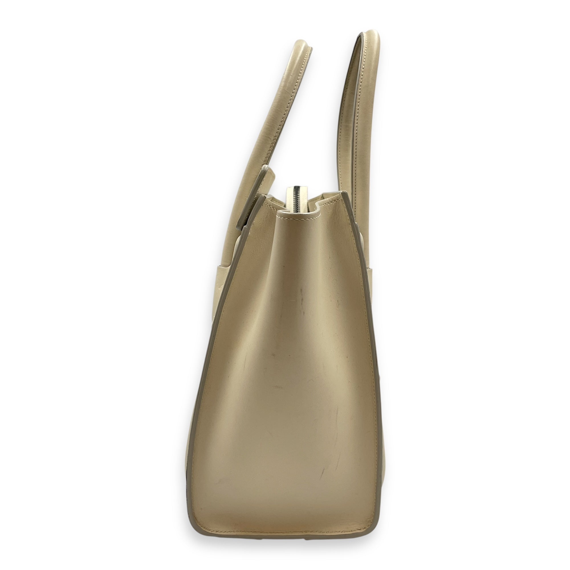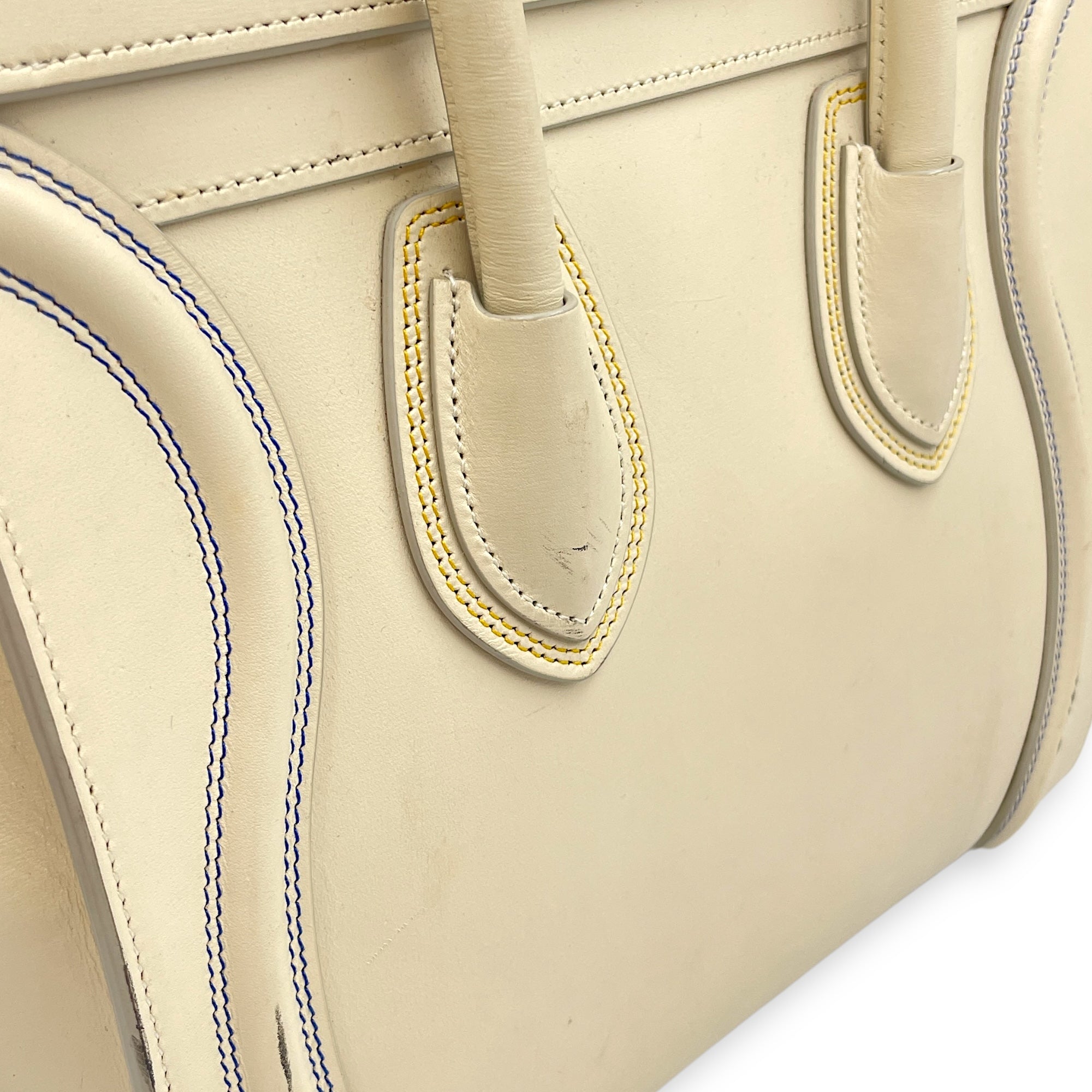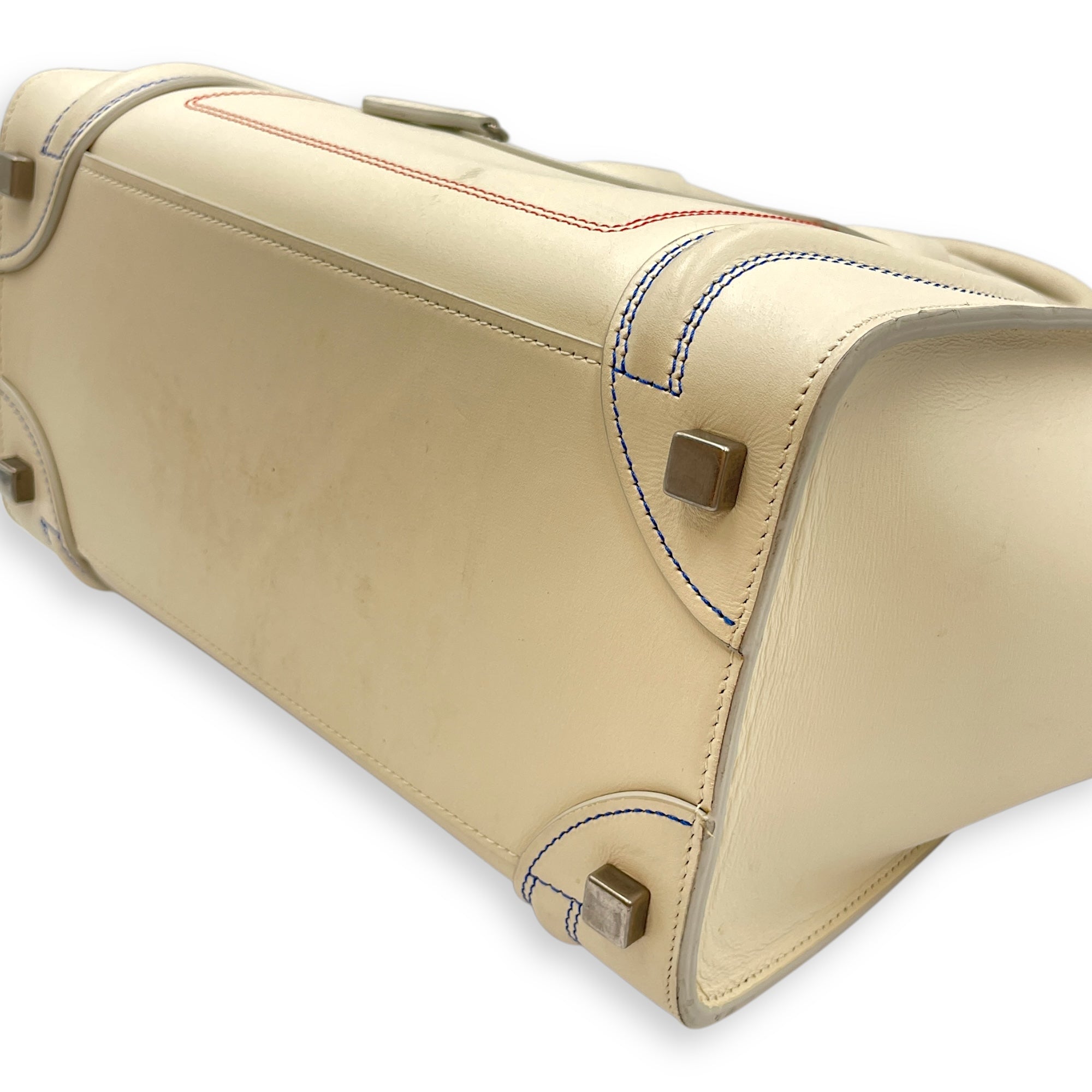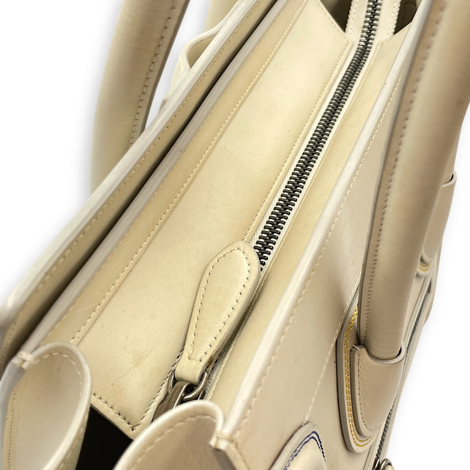 Be the first to review “Luggage Micro Off-White Top Handle Bag in Calfskin, Silver hardware”