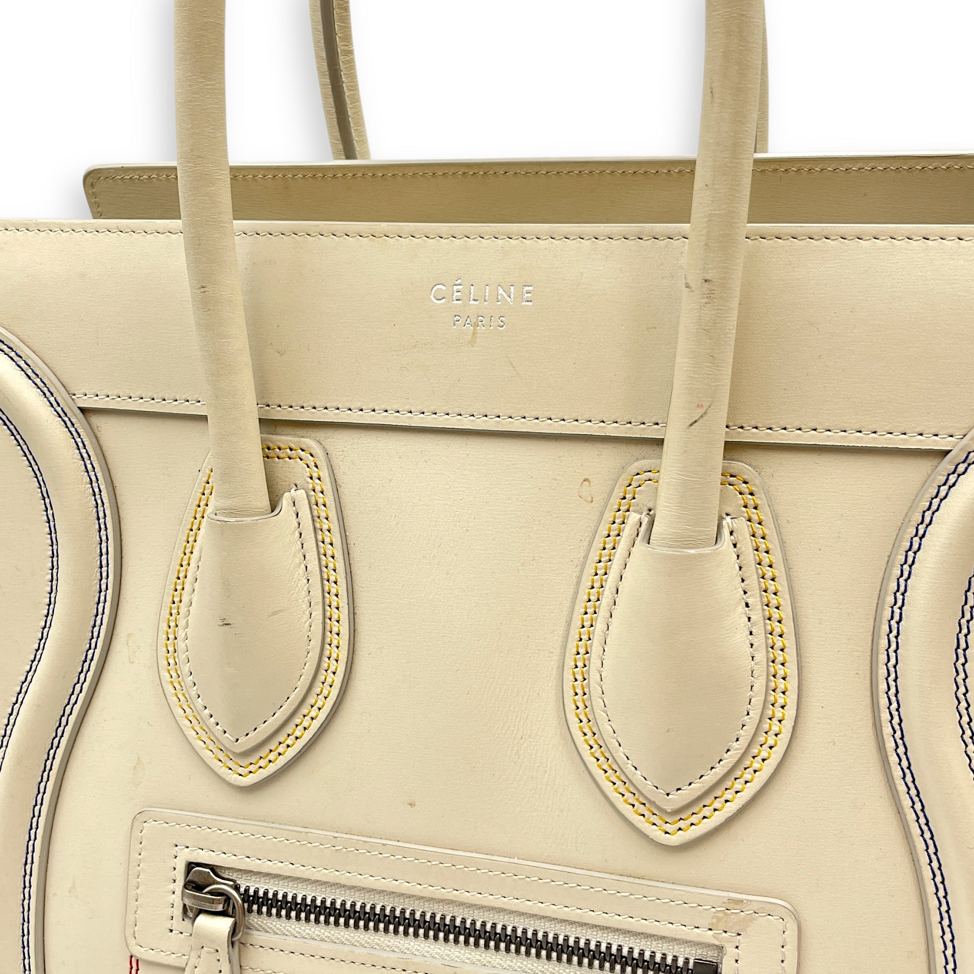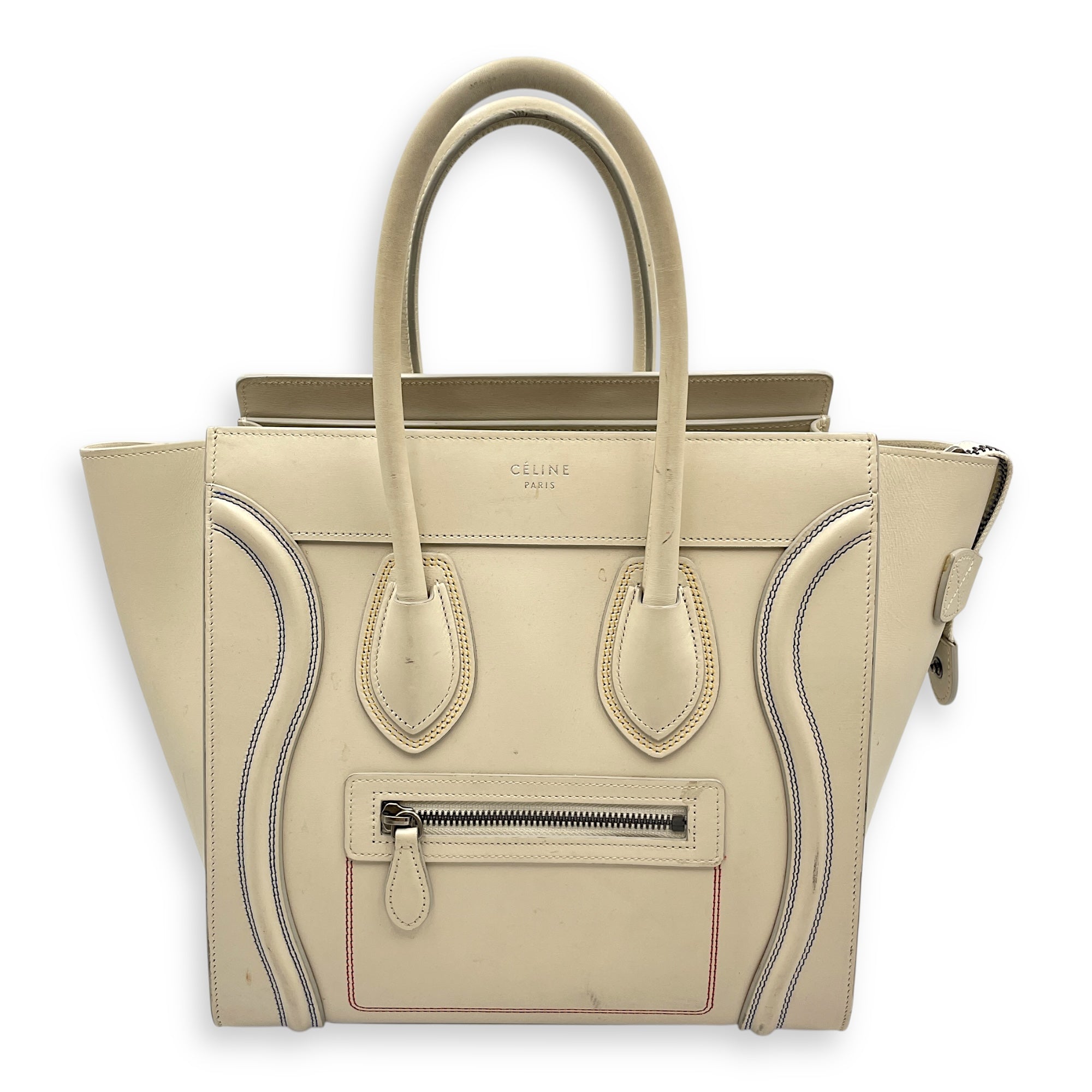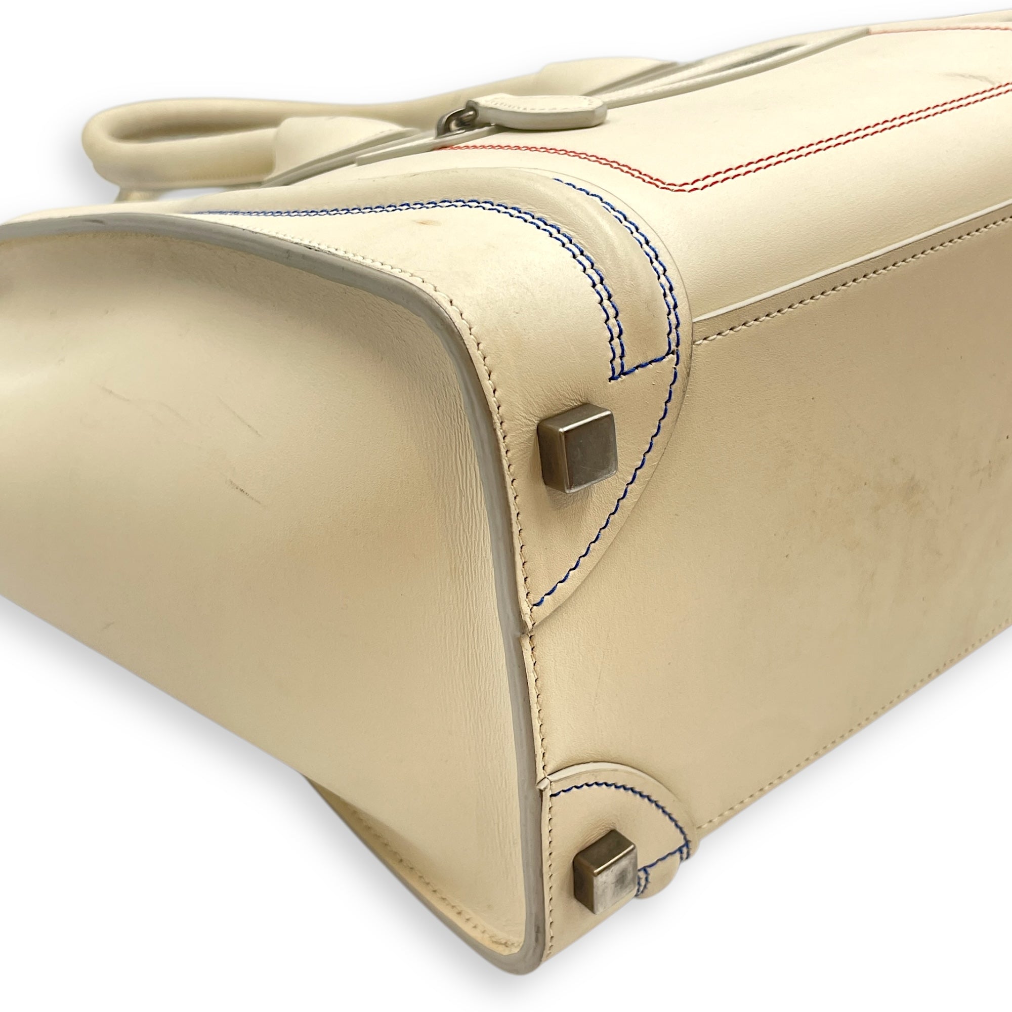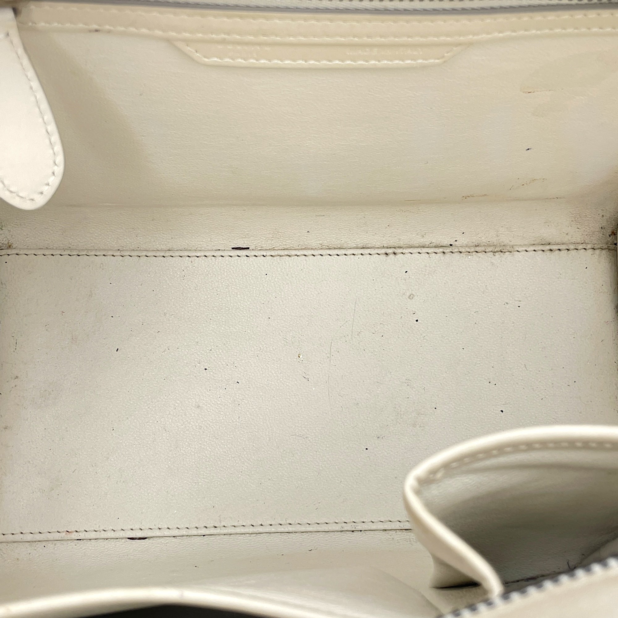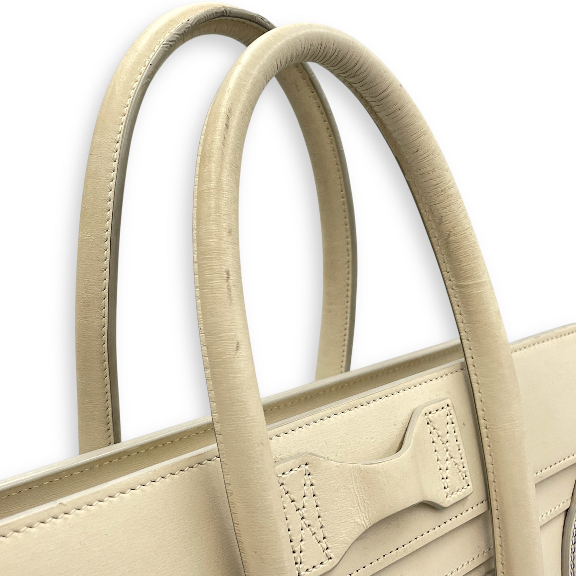Be the first to review “Luggage Micro Off-White Top Handle Bag in Calfskin, Silver hardware”