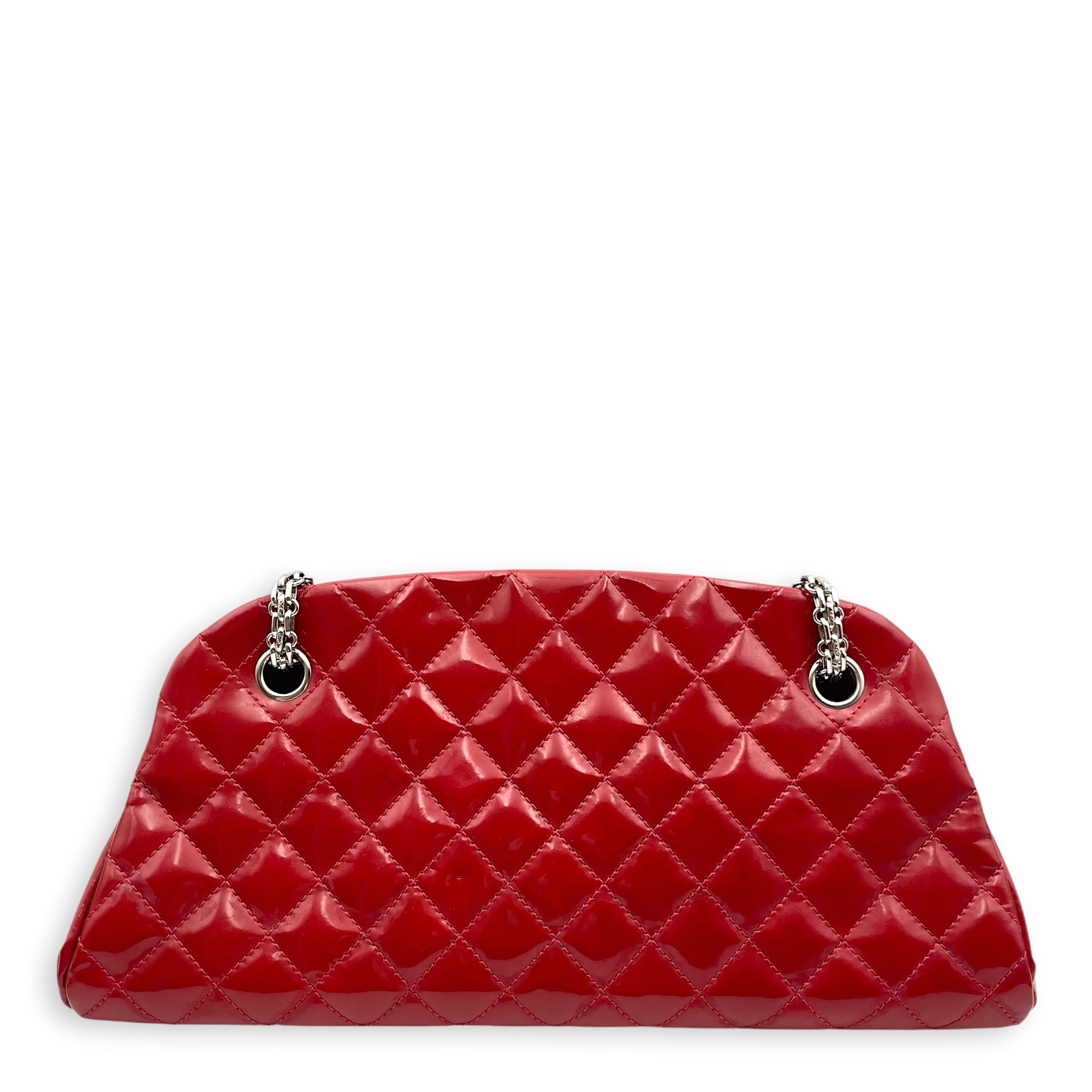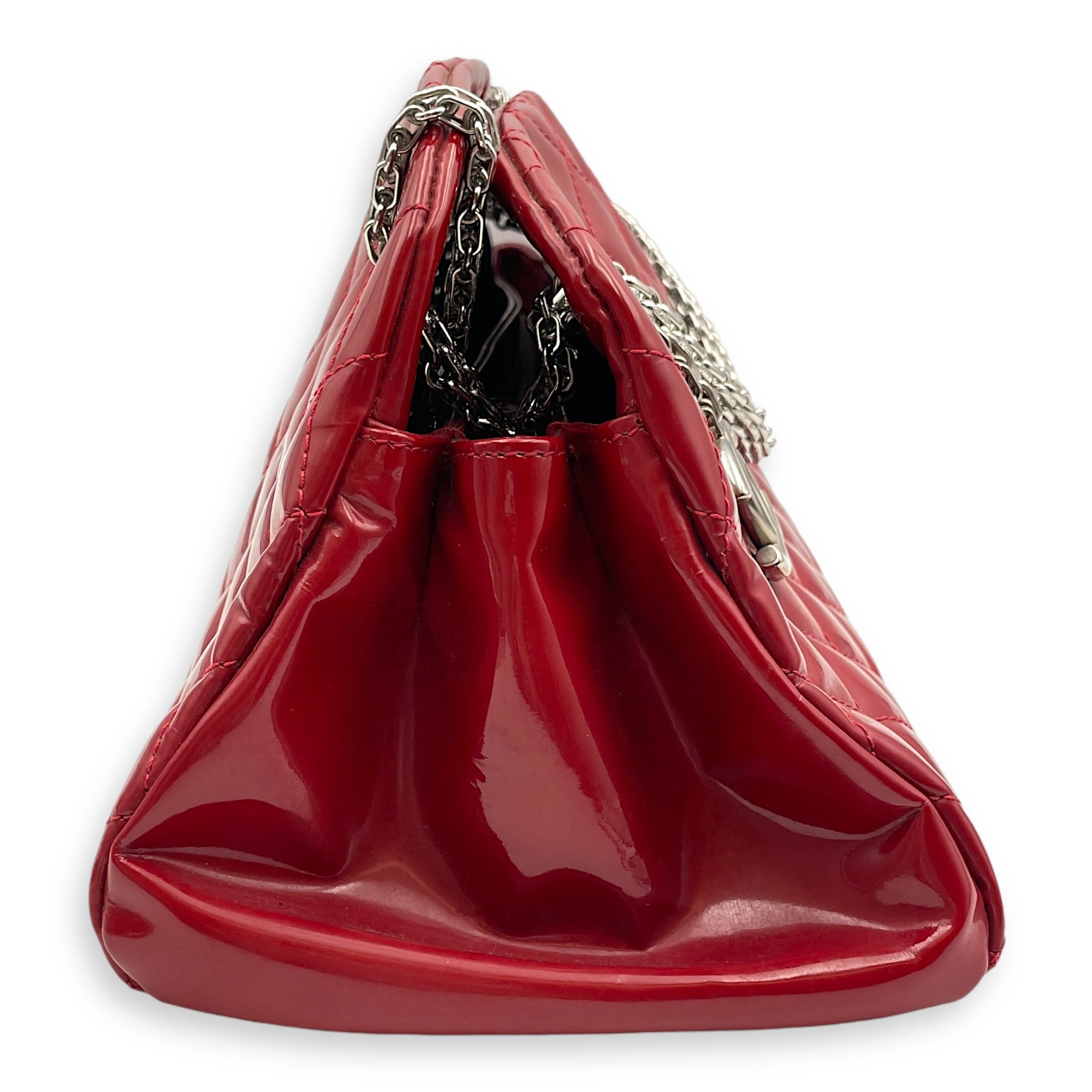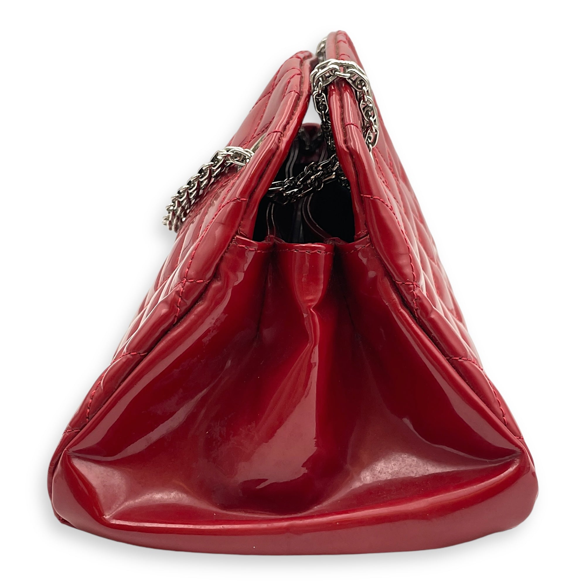 Mademoiselle Bowler Red Shoulder Bag in Patent Leather, Silver hardware