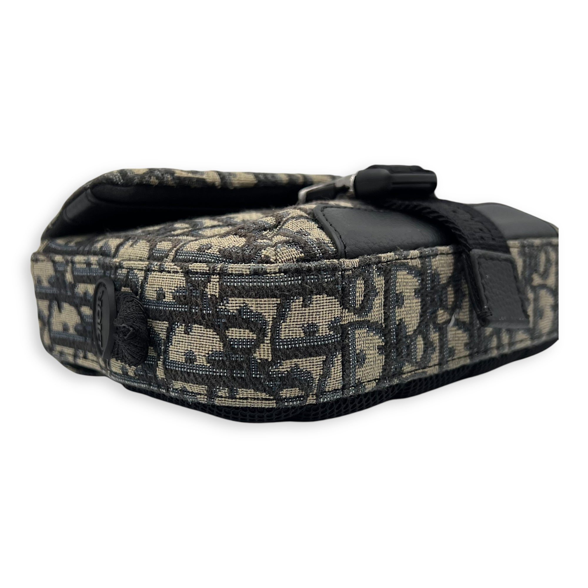 Oblique Blue Crossbody Bag in Jacquard, Silver hardware