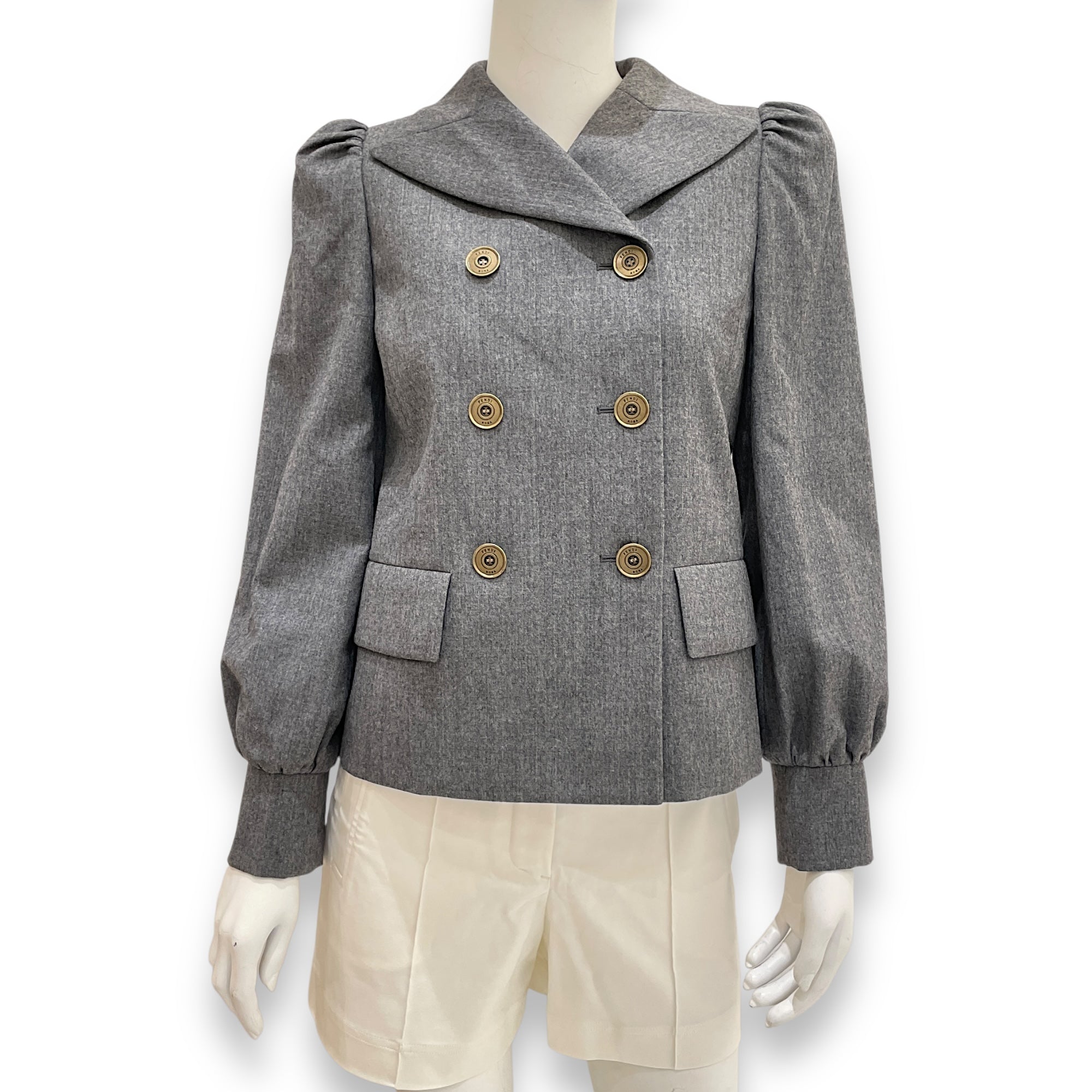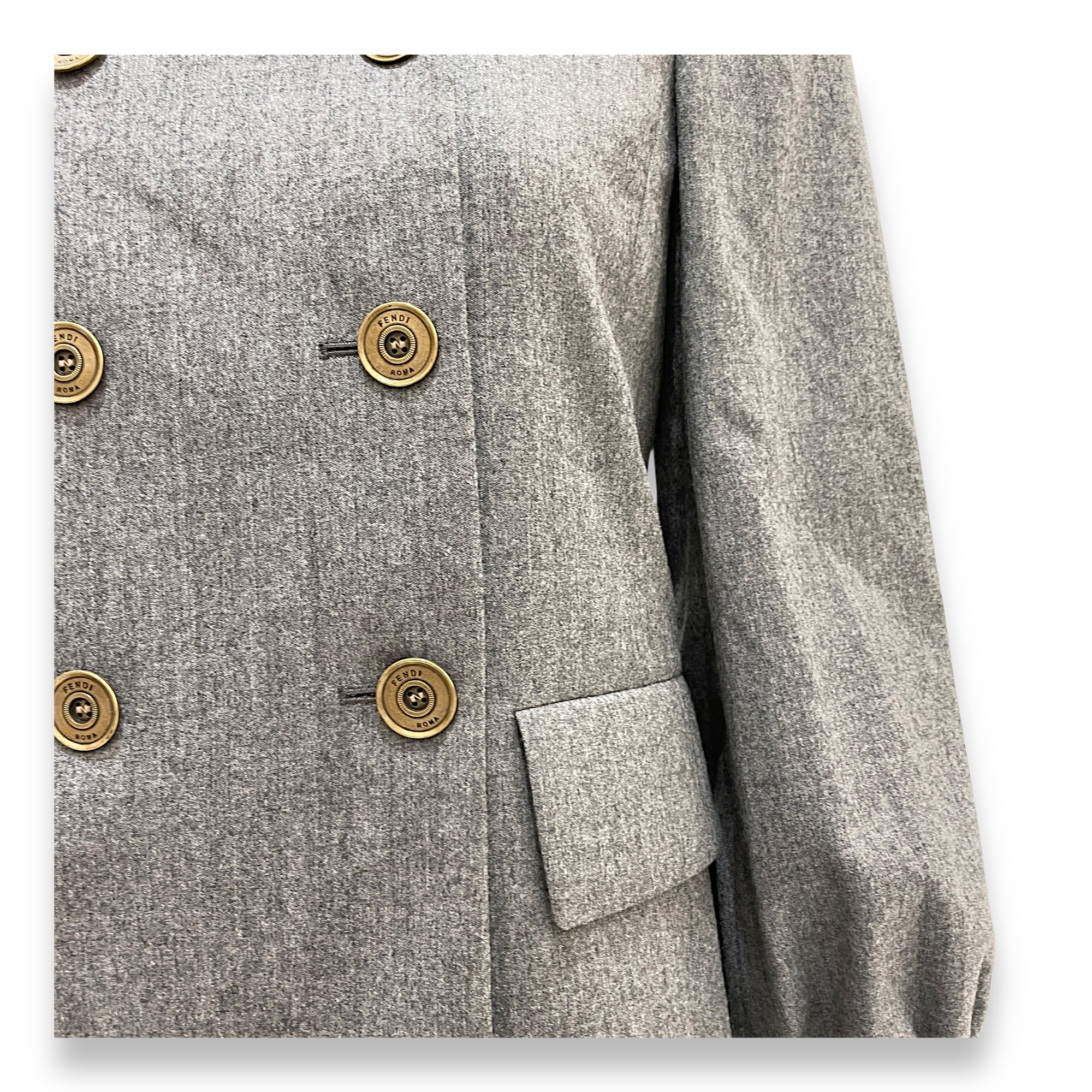 Peacoat Double- breasted Jacket IT 38 Grey in Viscose, Antique Brass hardware