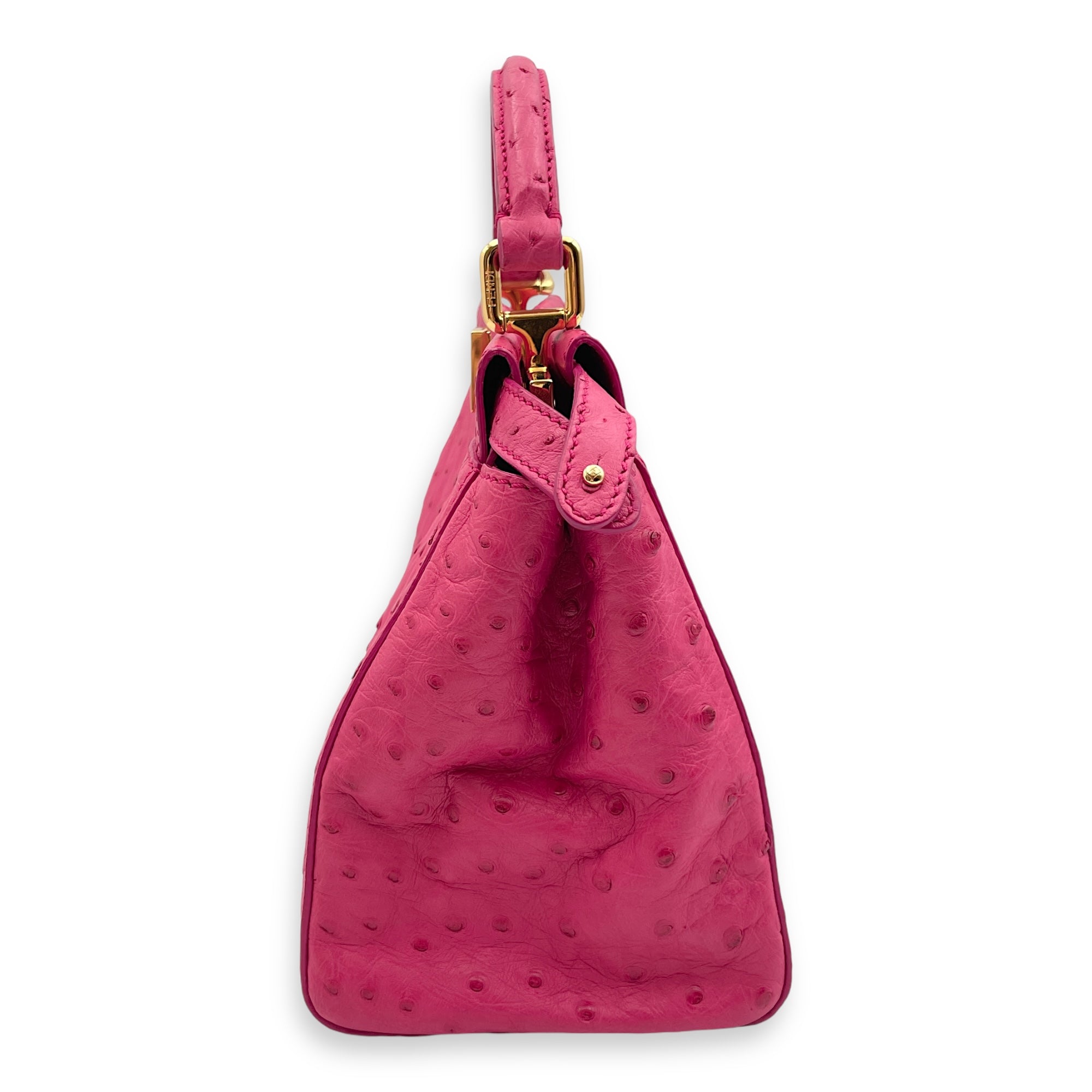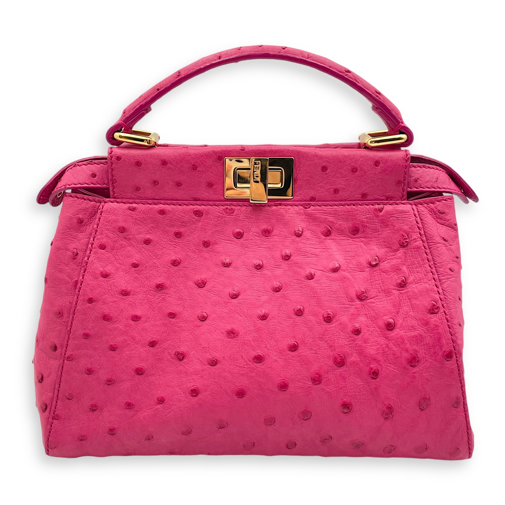Peekaboo Mini Pink Crossbody Bag in Ostrich, Gold hardware