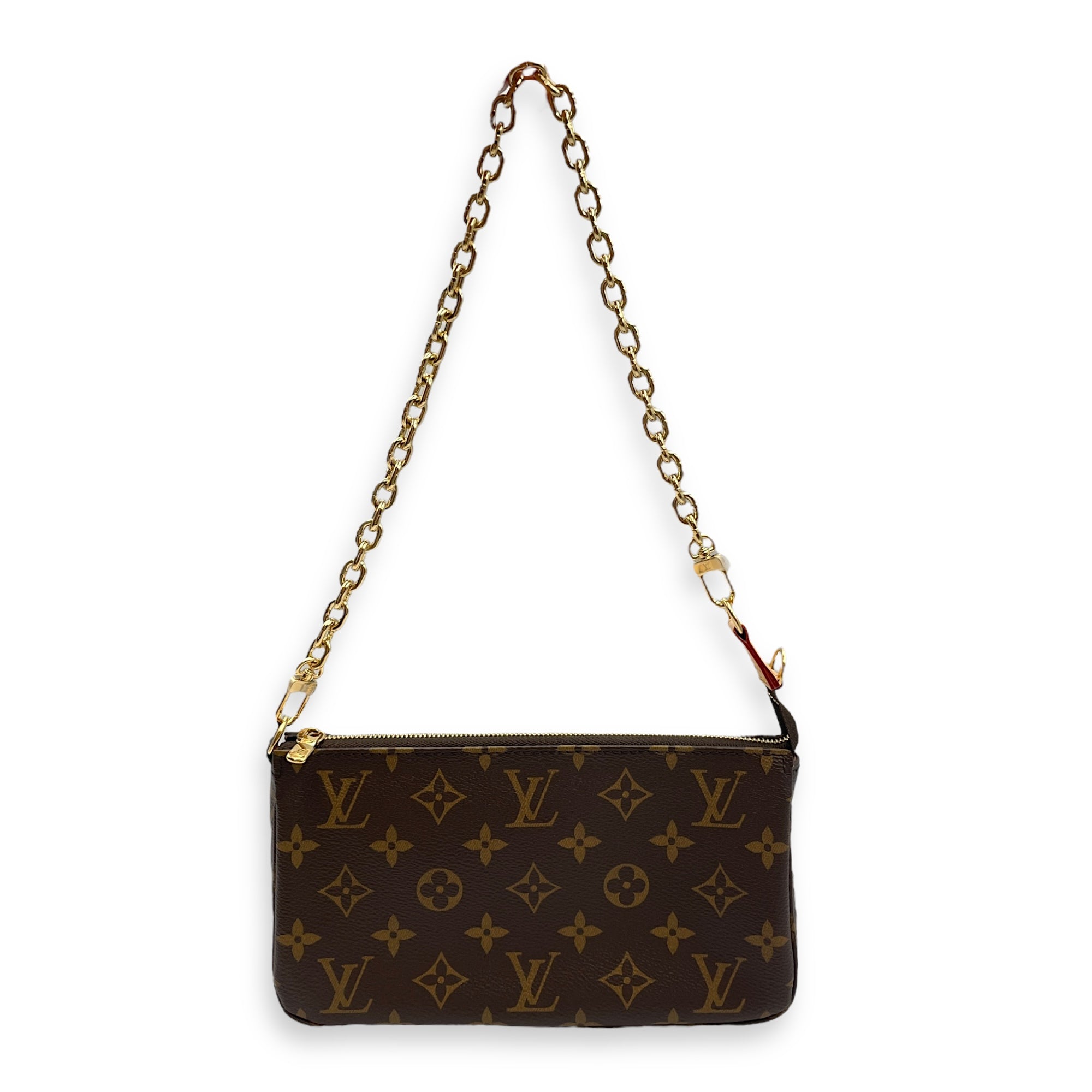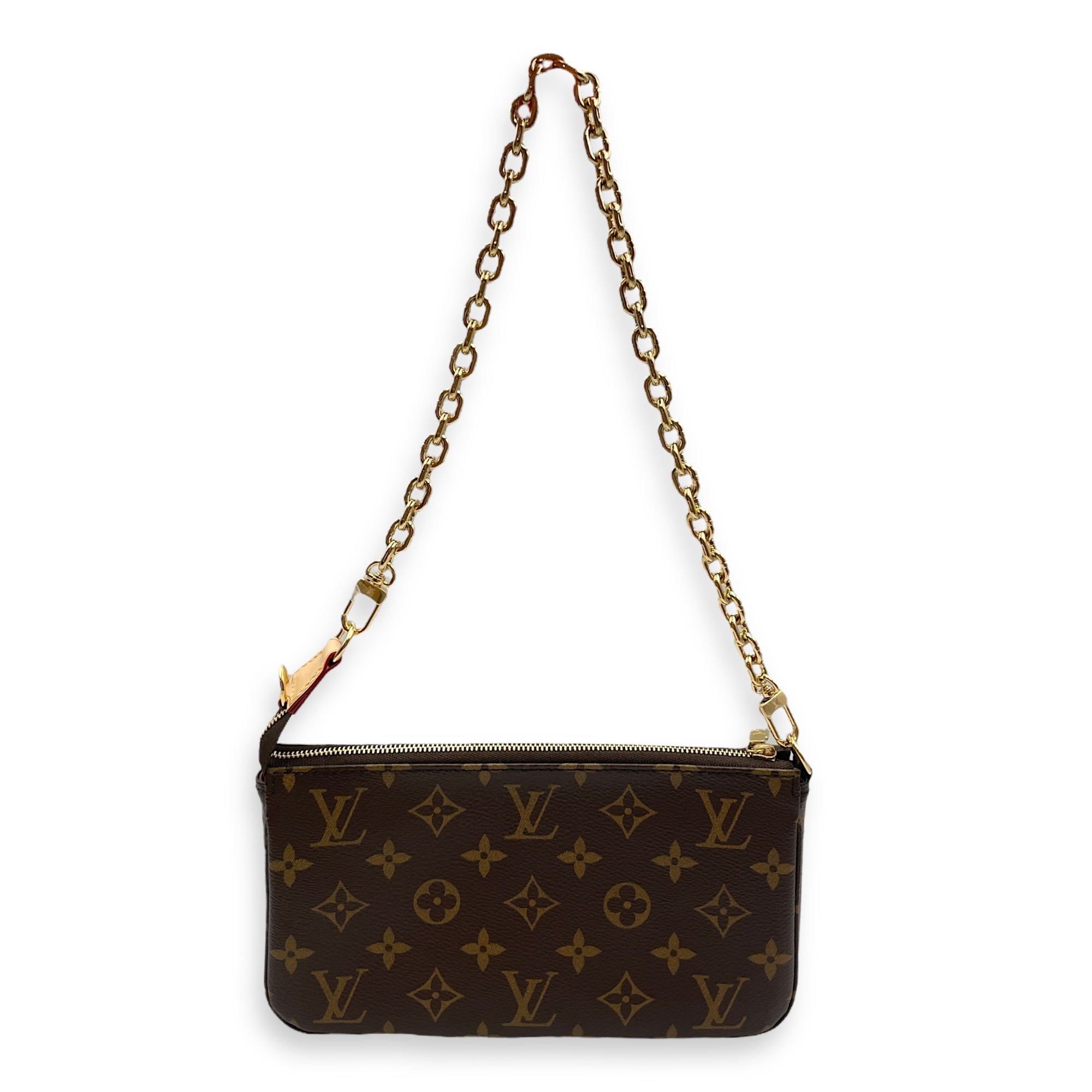 Pochette Monogram Brown Shoulder Bag in Canvas, Gold hardware