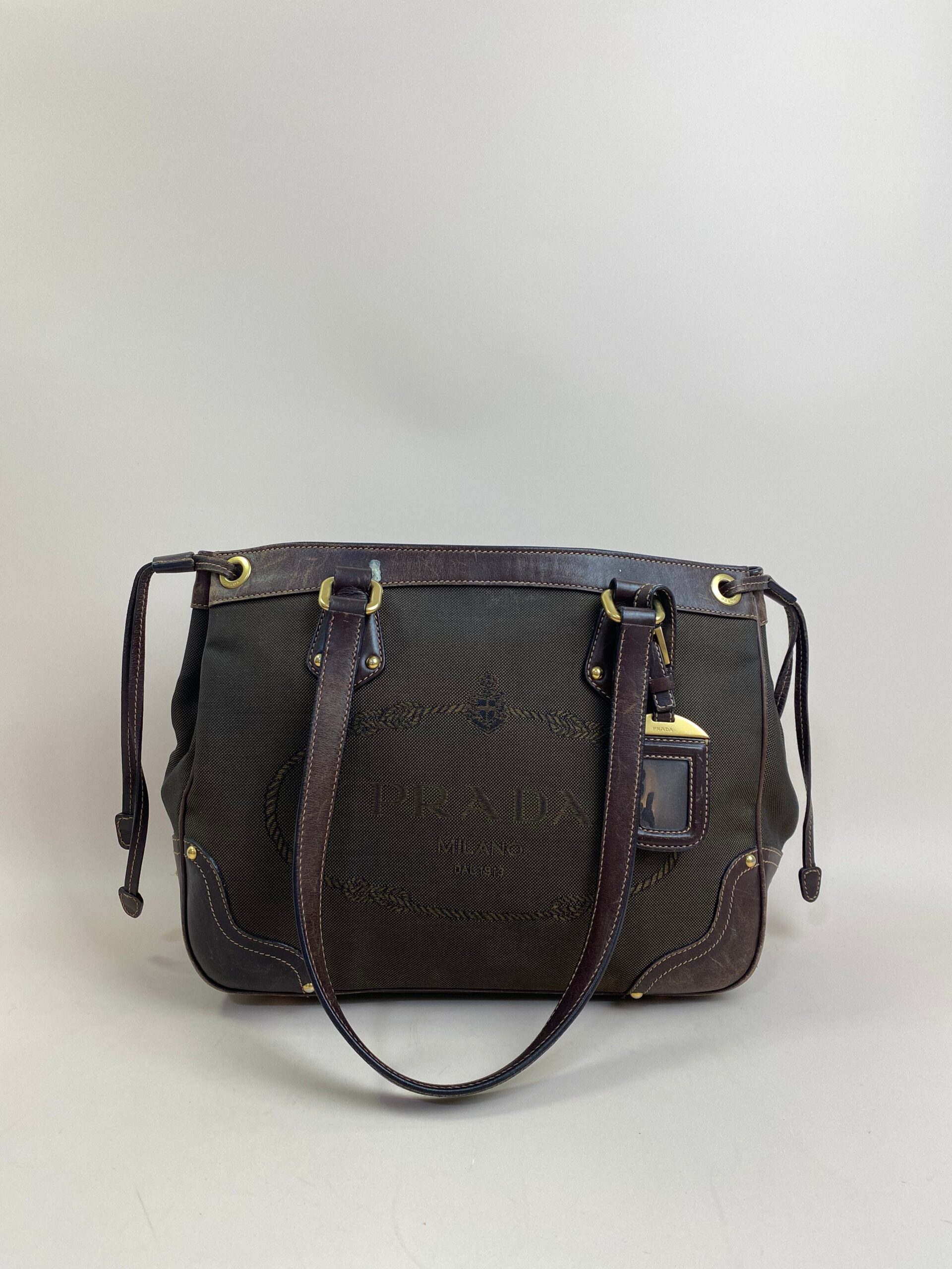 Prada Brown Bowling Bruciato Logo Shoulder Bag