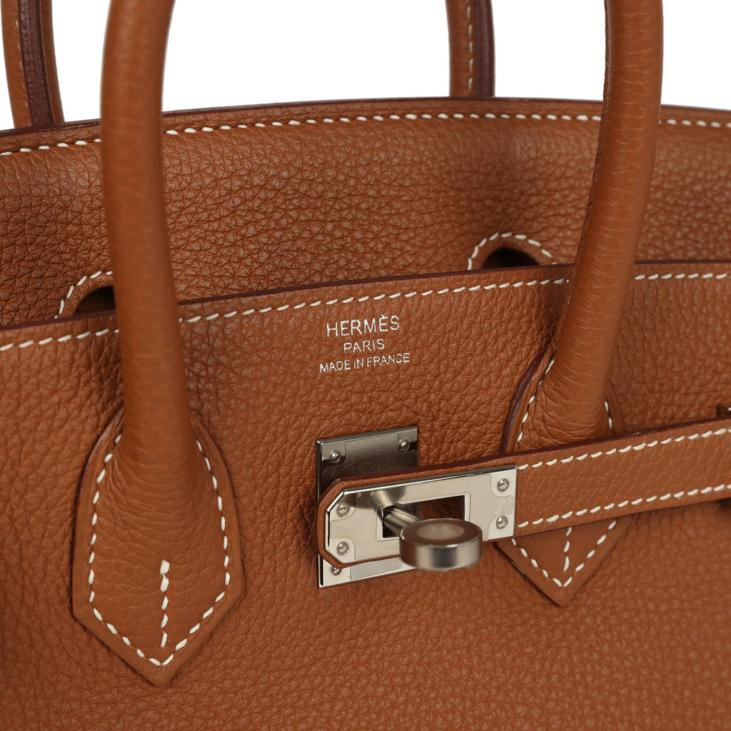 Pre-owned Hermes Birkin 25 Gold Togo Palladium Hardware Shop for an authentic pre-owned Hermes Birkin 25 in Gold togo leather with palladium hardware in mint condition at Madison Avenue Couture.