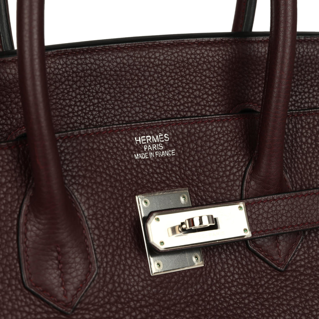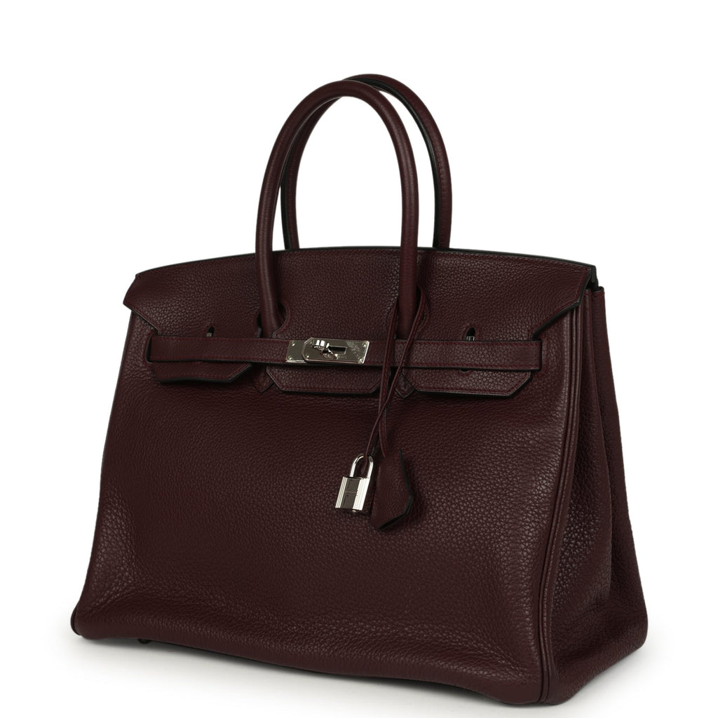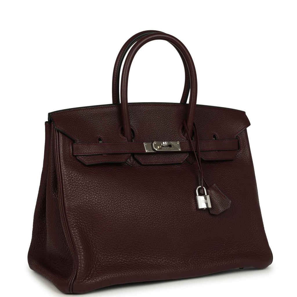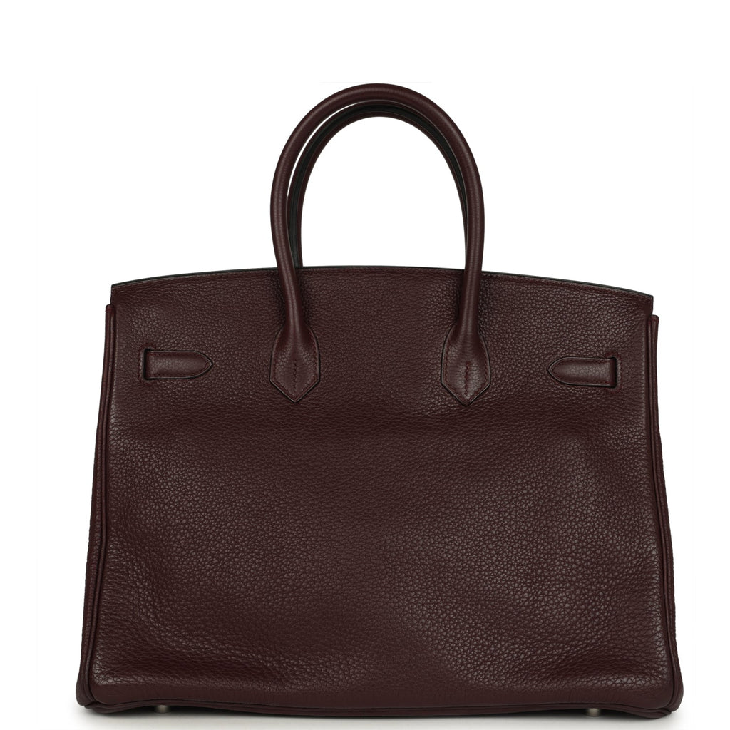 Pre-owned Hermes Birkin 35 Prune Clemence Palladium Hardware Shop for an authentic pre-owned Hermes Birkin 35 in Prune clemence leather with gold hardware in mint condition at Madison Avenue Couture.