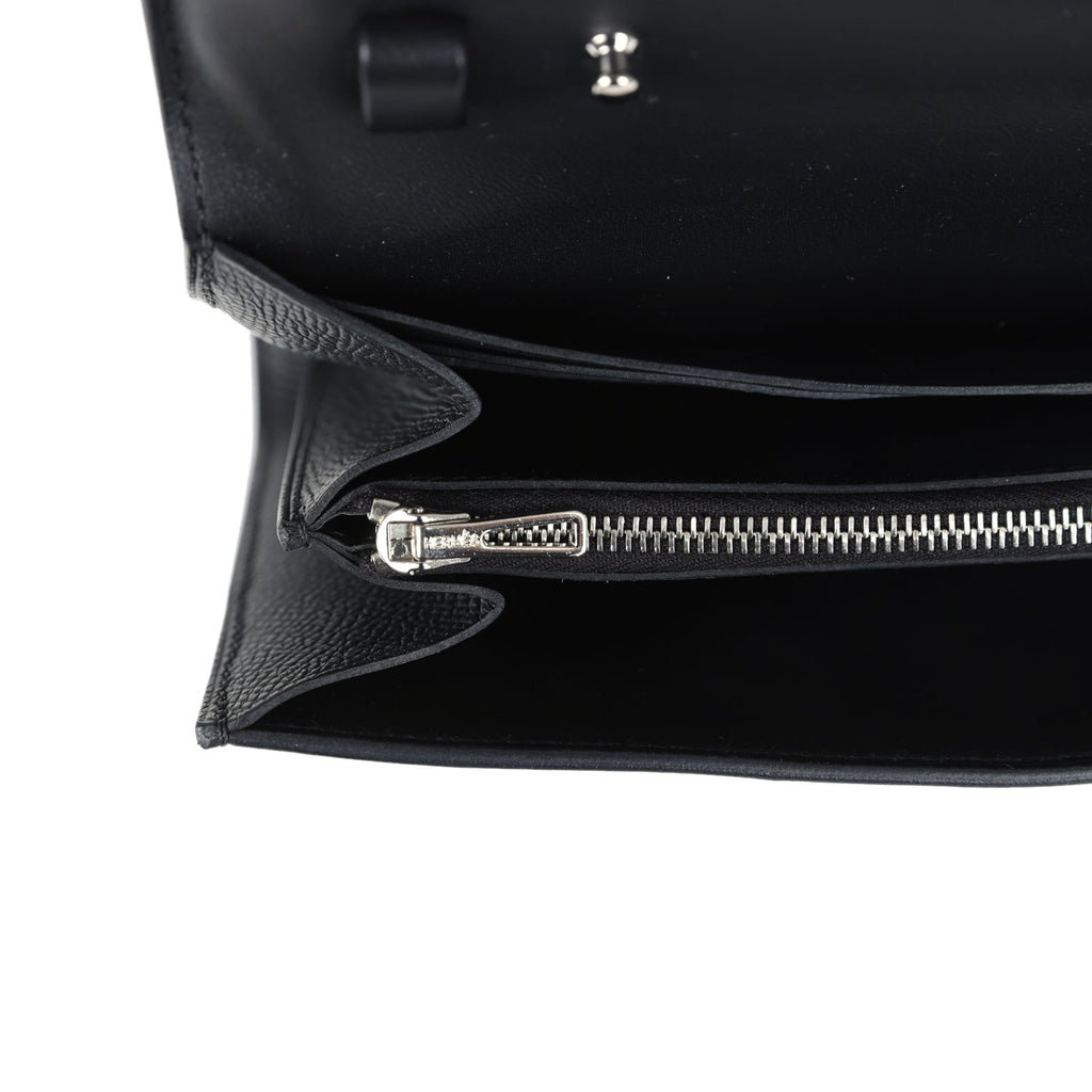 This Constance Wallet To Go is in Black epsom leather with palladium hardware and has tonal stitching, metal “H” snap lock closure, open front compartment and removable crossbody strap.The interior is lined with Black epsom leather and two main compartments with six credit card slots and a zippered center compartment with Hermes H lock pull.Collection: W (2024)Origin: FranceCondition: Pre-owned; Mint – This bag retains its shape structure. The exterior leather is clean with no signs of wear or use. There is no plastic on the hardware. There are hairline scratches to the exposed hardware. The interior leather has some minor scuff marksAccompanied by: Hermes box, strap, strap dustbagMeasurements: 8″ width x 4.5″ width x 1.5″ depth; 20″ strap drop