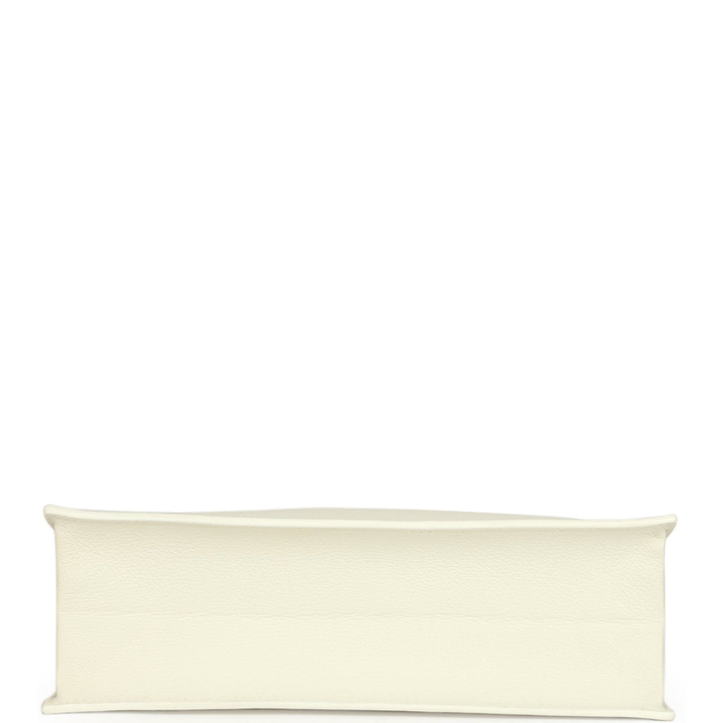 This Kelly Danse II is in White evercolor leather with gold hardware and has tonal stitching, two straps with front flap closure and an adjustable flat shoulder strap for multistyle wear.The interior is lined with White lambskin and has a removable Hermes stamped base and an open wall pocket.Collection: U (2022)Origin: FranceCondition: Pre-owned; Excellent to Mint – This bag retains its shape structure. There is only plastic on the flap hardware. The exposed hardware has moderate scratching present. The exterior leather is clean with the exception of some rubbing to the to the edge dressing on the bottom corners. The interior leather is clean with minimal signs of wear.Accompanied by: Hermes box, Hermes dustbag, felt, shoulder strap, shoulder strap dustbag, removable base insert, removable base insert dustbagMeasurements: 8.5″ width x 6.5″ height x 2.75″ depth; 1″ handle drop