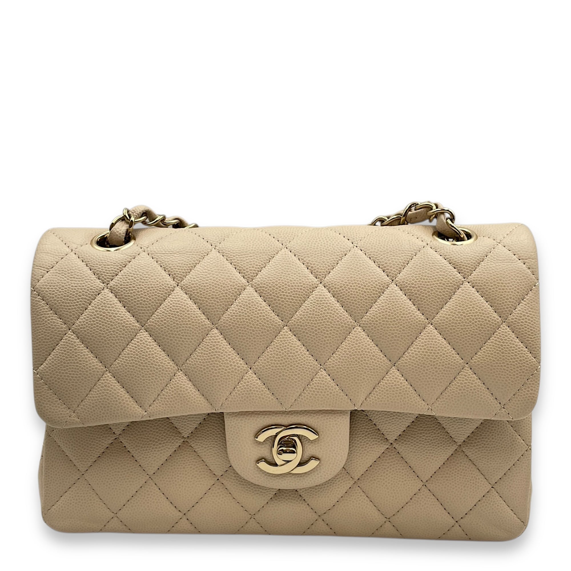 Be the first to review “Quilted CC Classic Small Beige Double Flap Bag in Caviar Leather, Gold hardware”