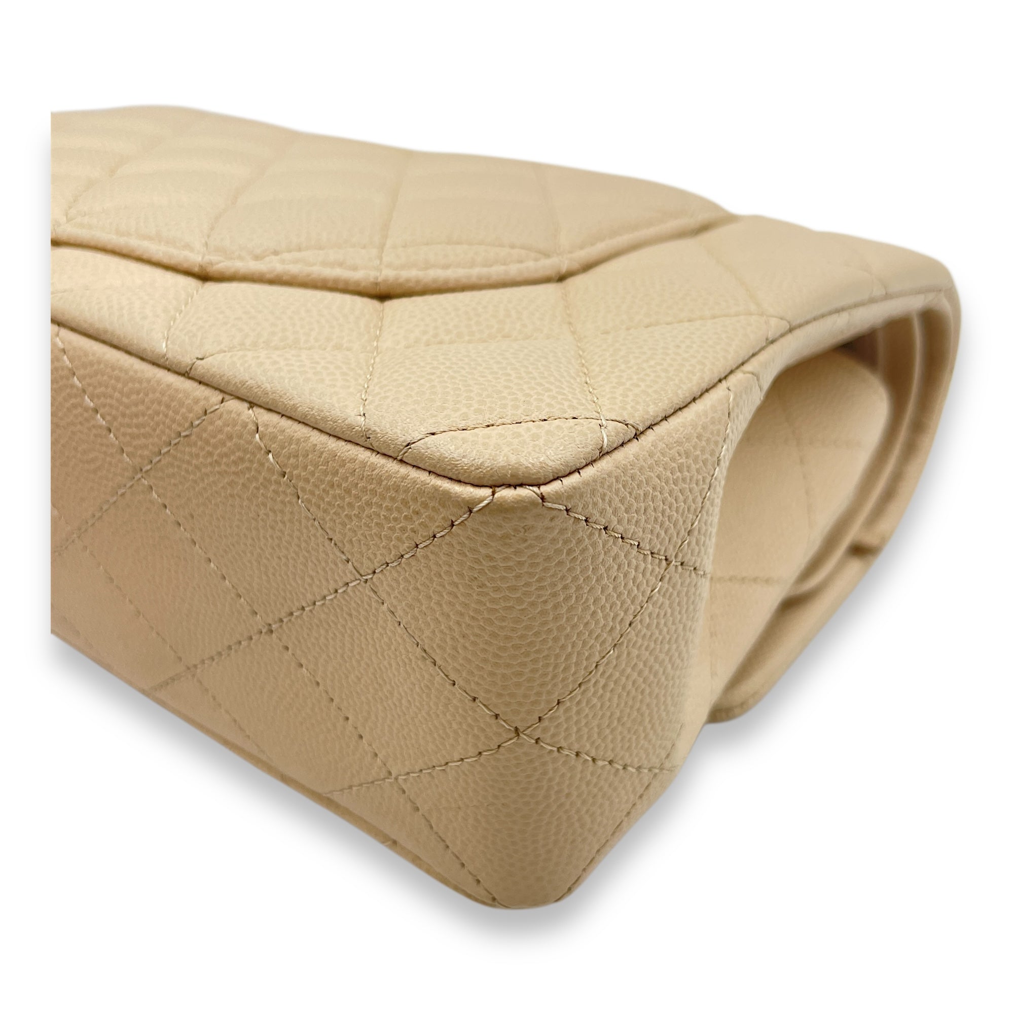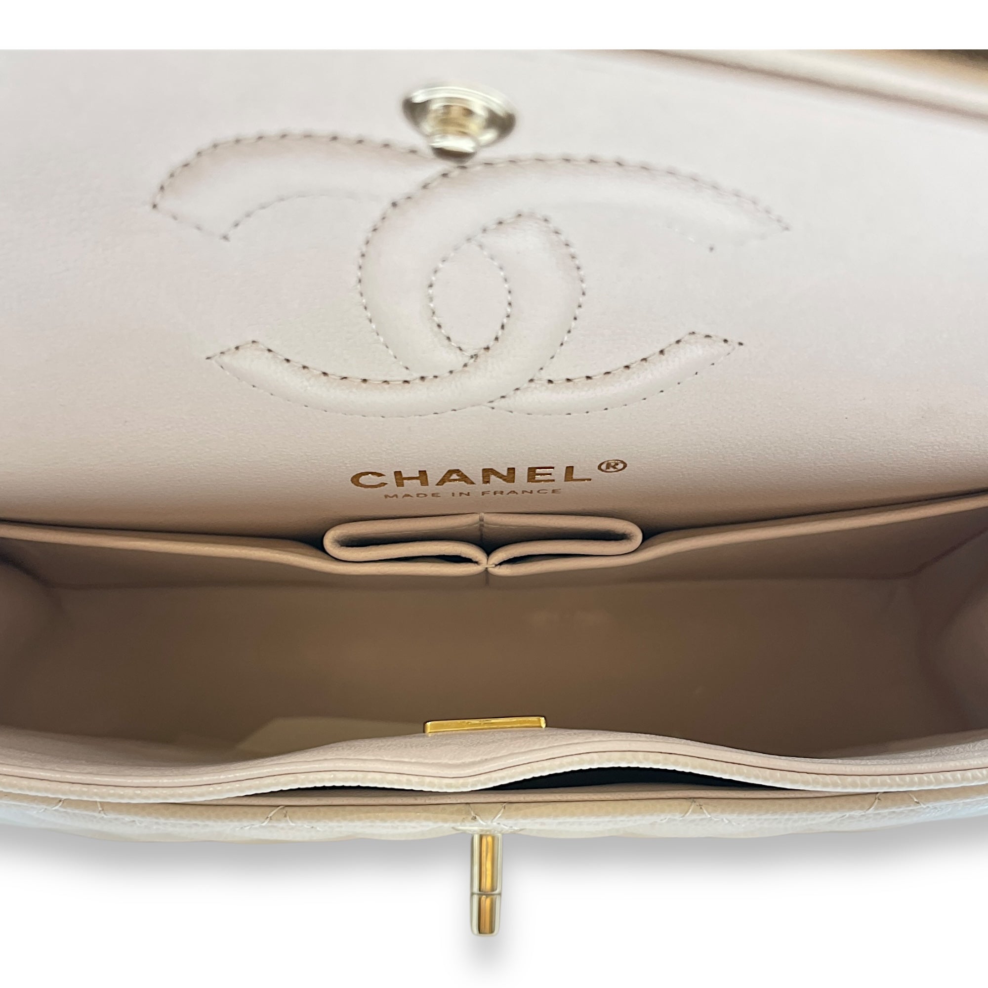 Quilted CC Classic Small Beige Double Flap Bag in Caviar Leather, Gold hardware