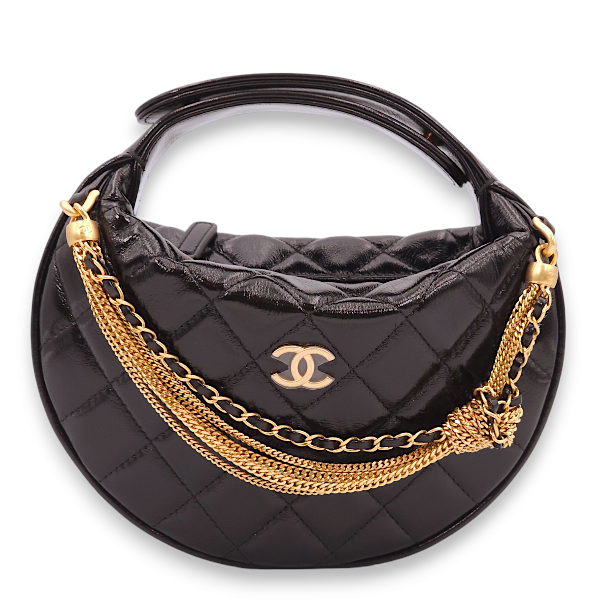 Be the first to review “Quilted Round Mini Black Top Handle Bag in Calfskin, Gold hardware”