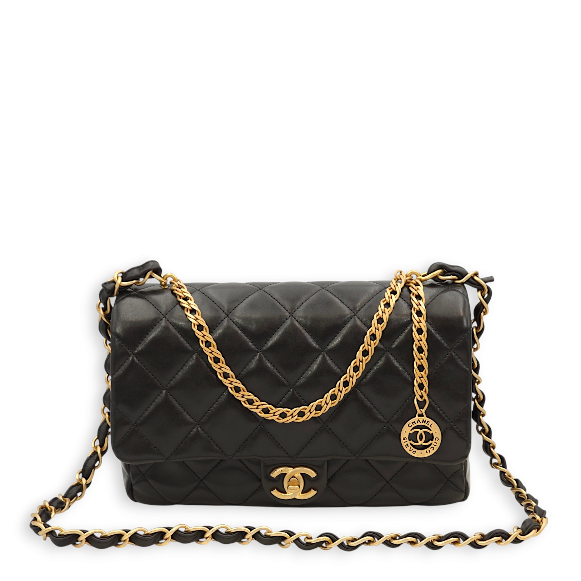 Be the first to review “Quilted Seasonal Flap Black Crossbody Bag in Lambskin, Gold hardware”