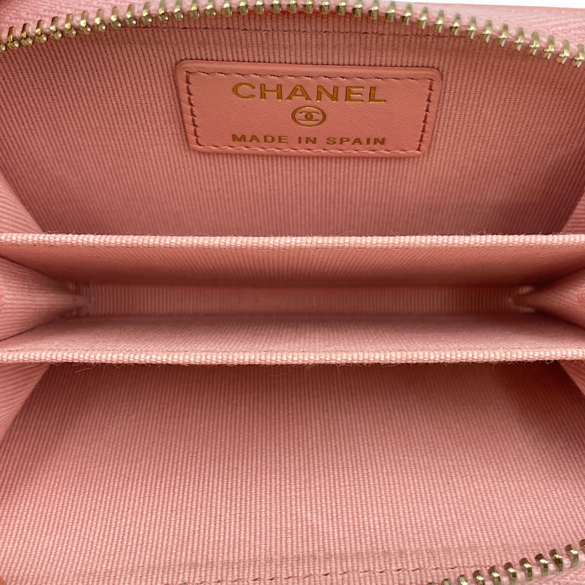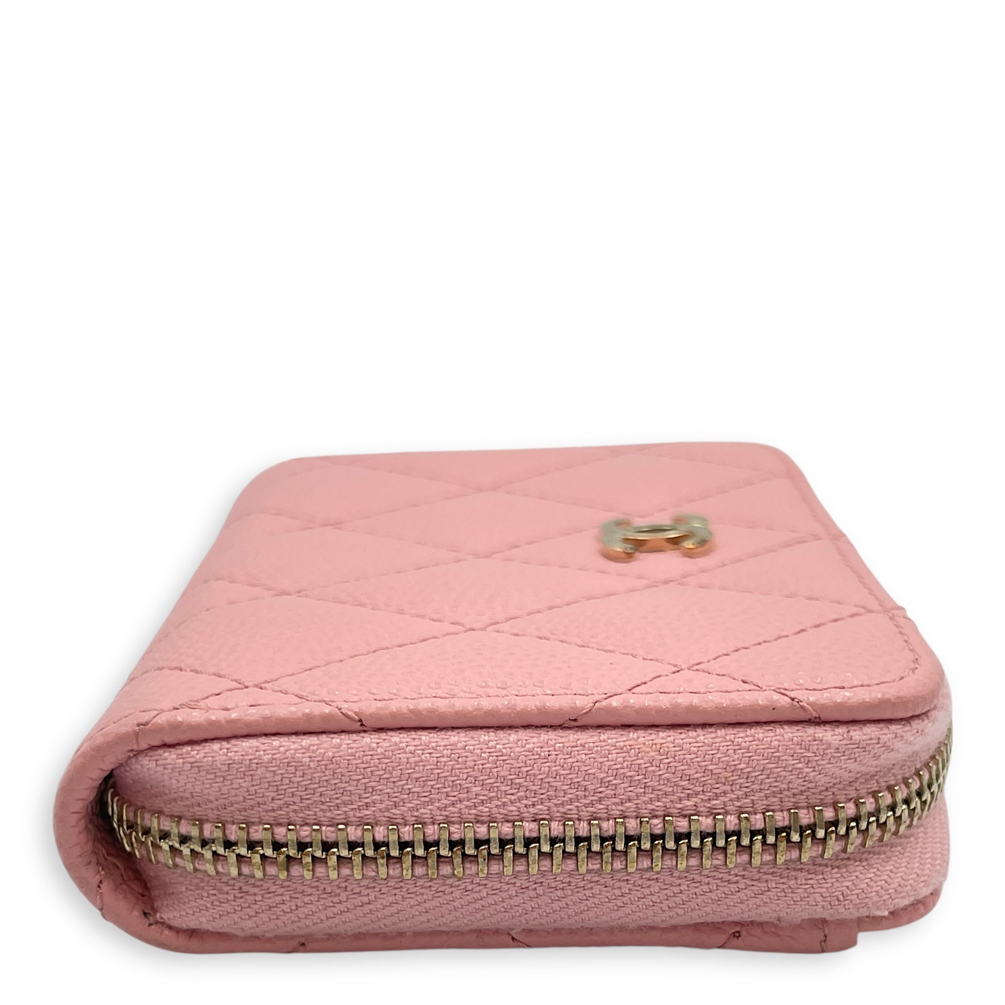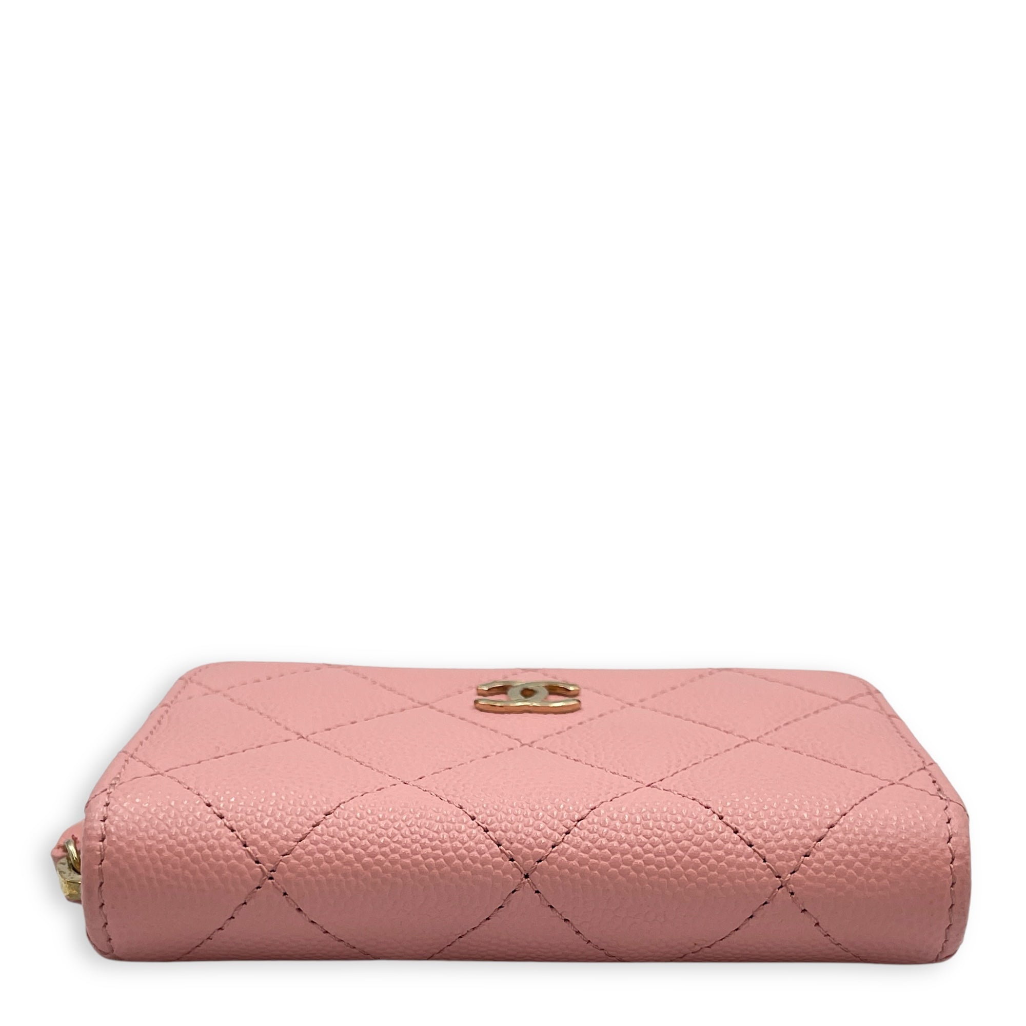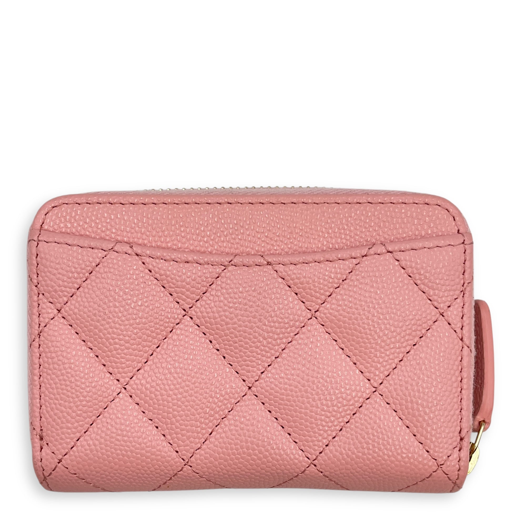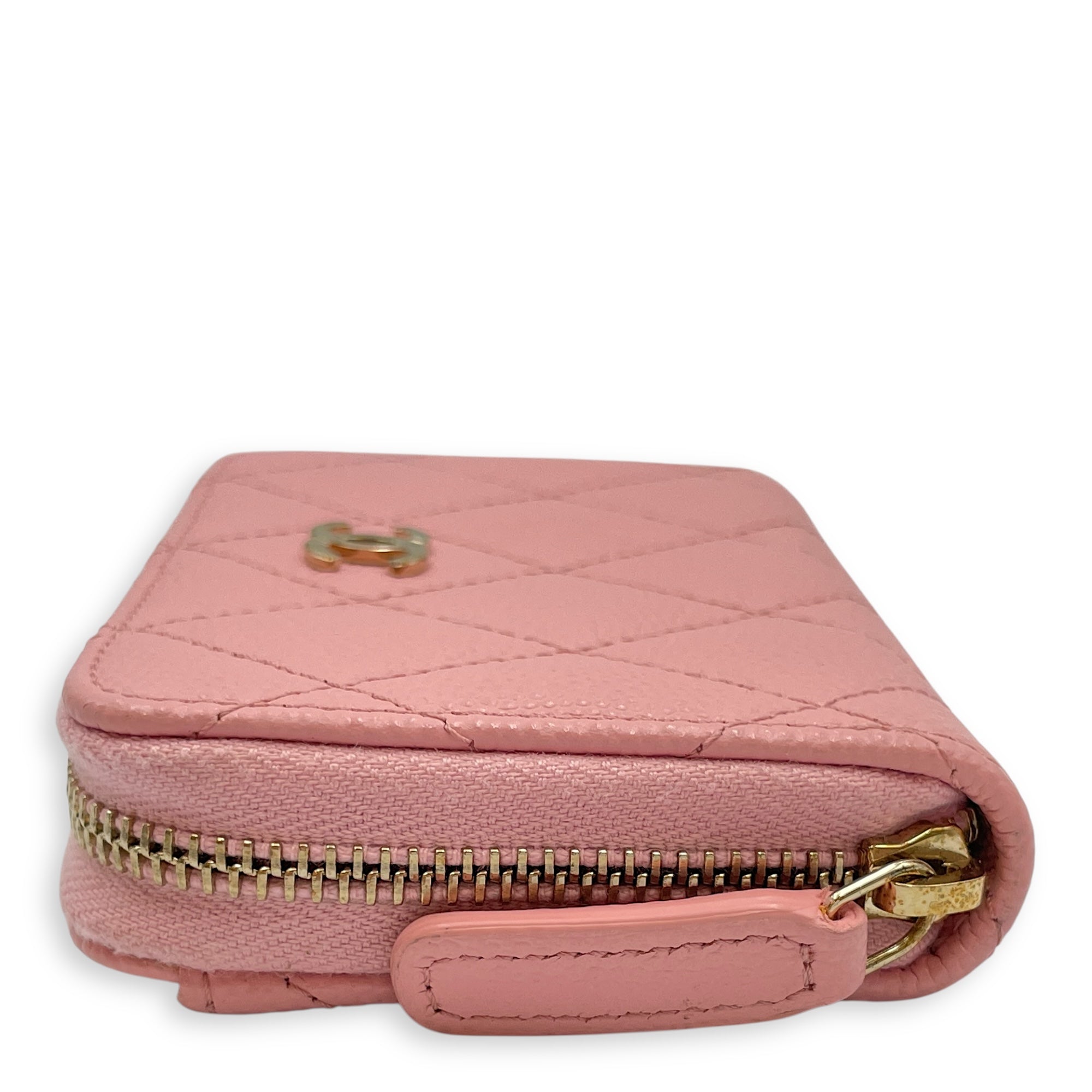 Quilted Zip Pink Card Holder in Caviar Leather, Gold hardware