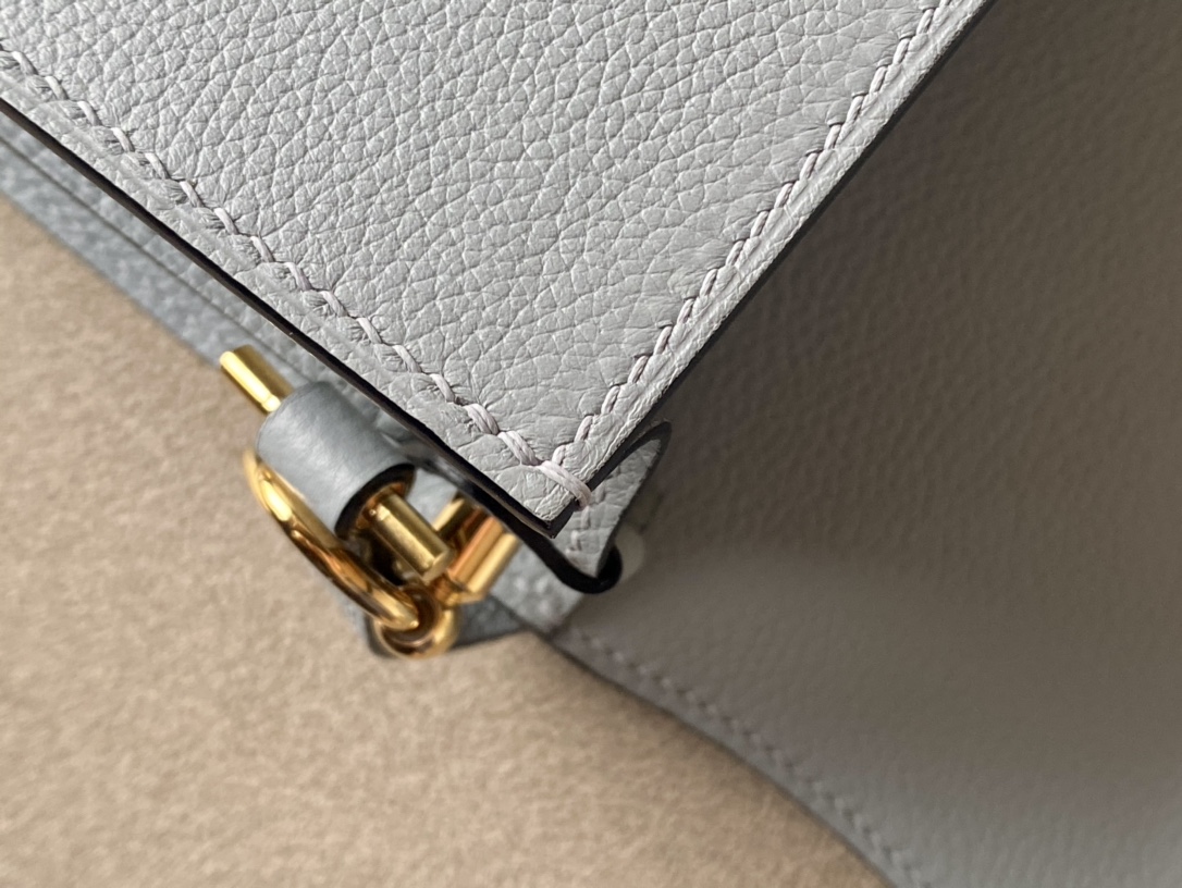 Includes ribbon, care booklet, dust bag, paper bag and box.