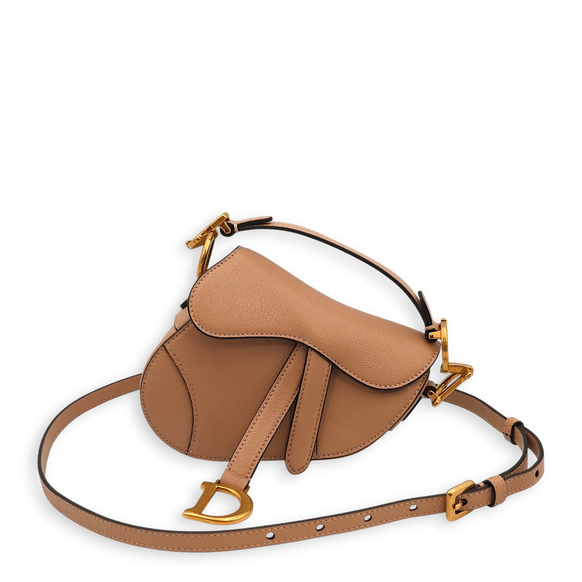 Be the first to review “Saddle Micro Beige Top Handle Bag in Goat Leather, Gold hardware”