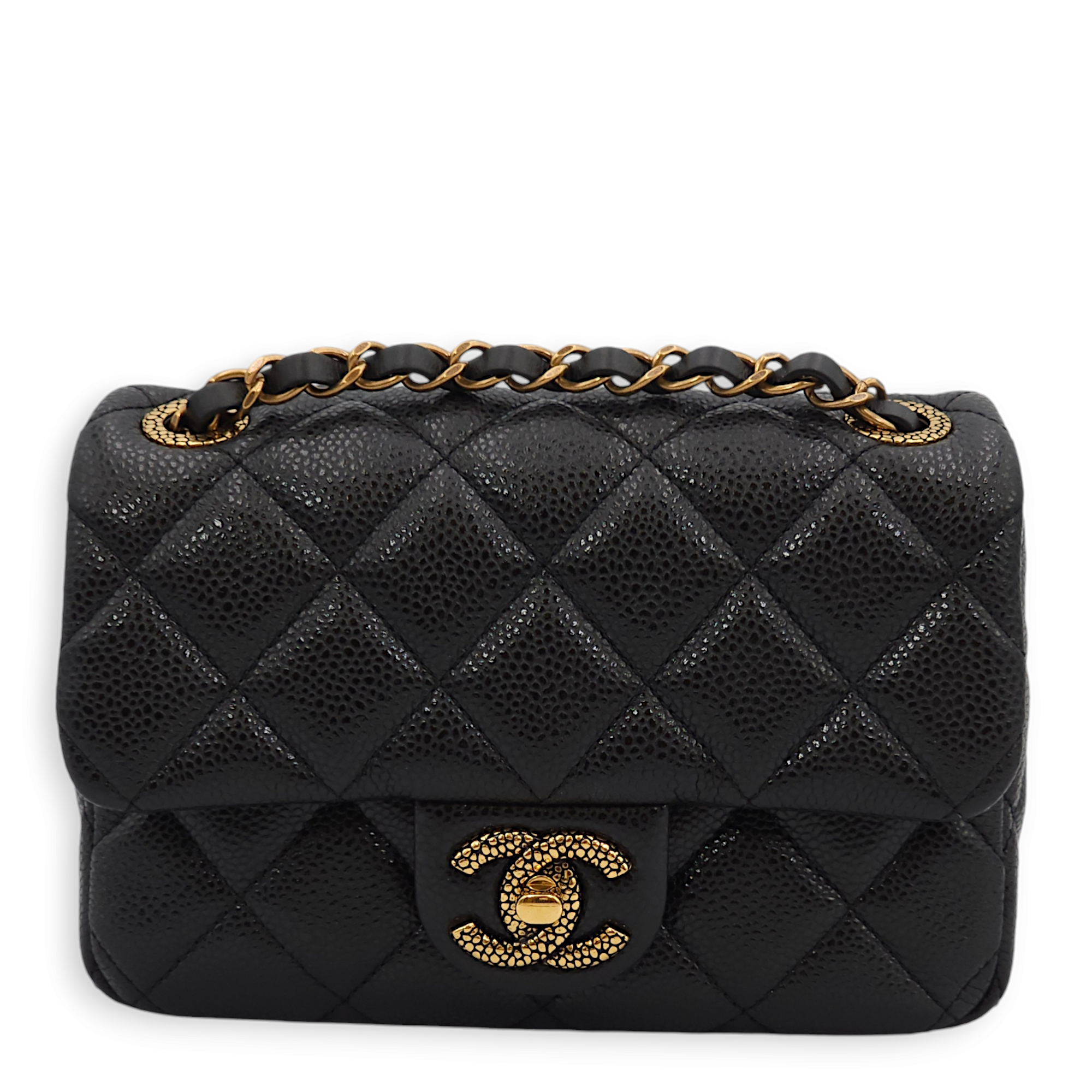 Be the first to review “Seasonal Quilted Flap Mini Black Crossbody Bag in Caviar Leather, Gold hardware”