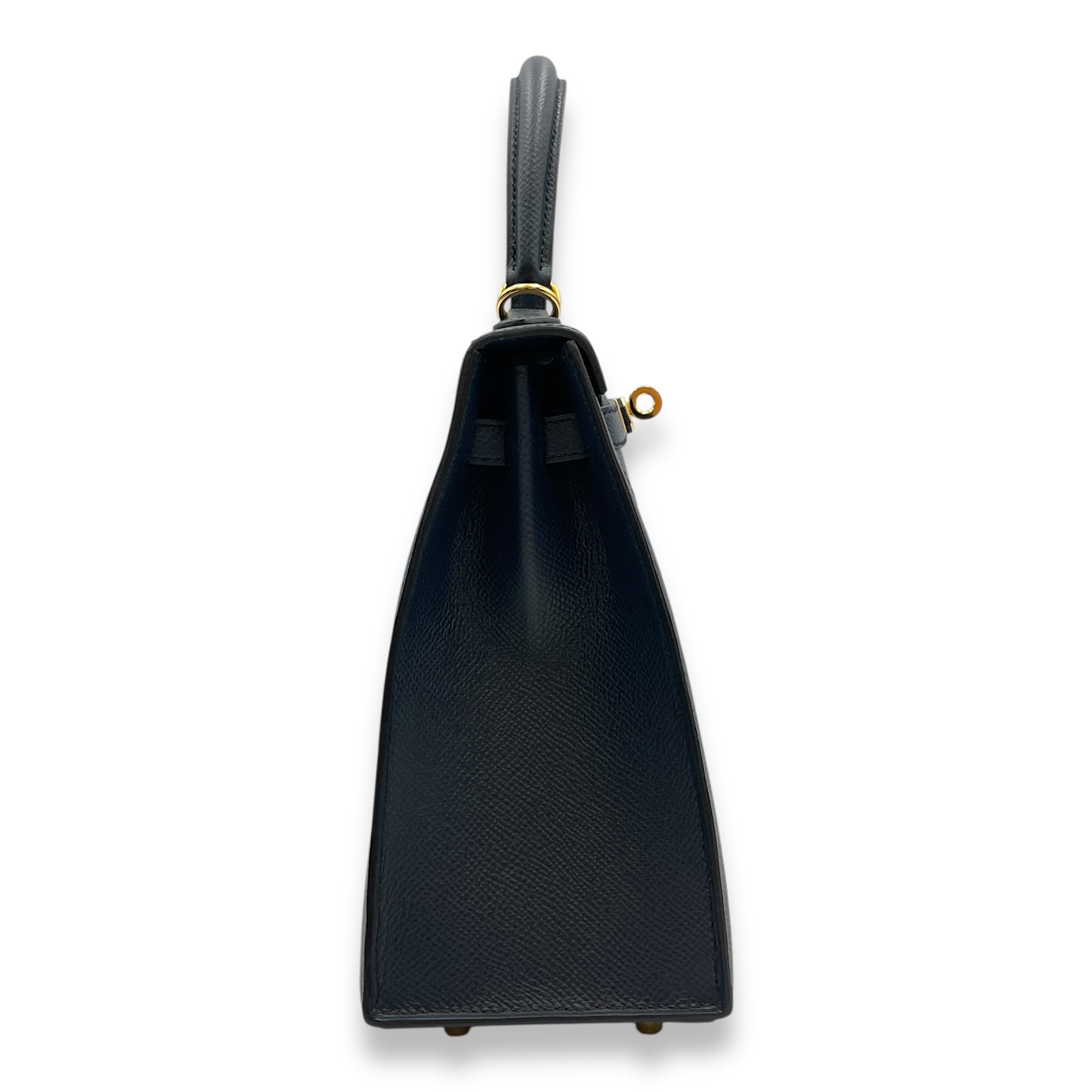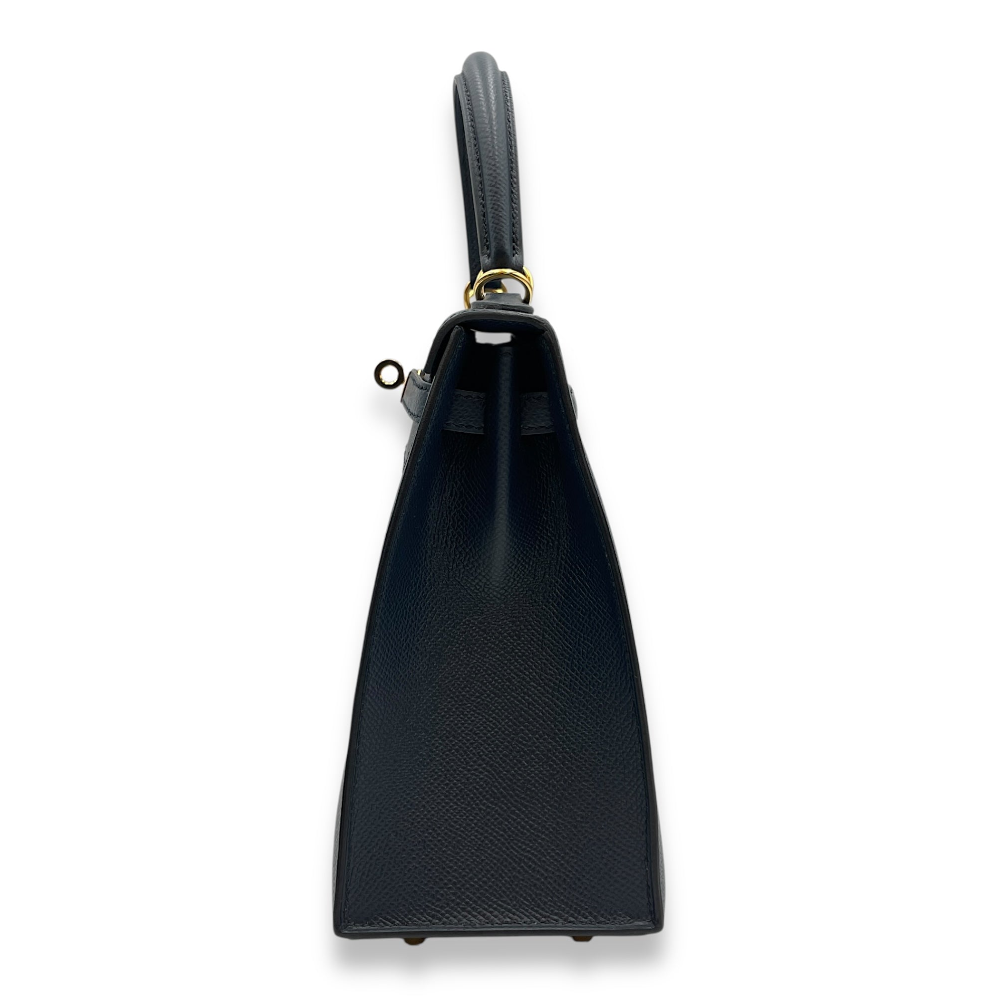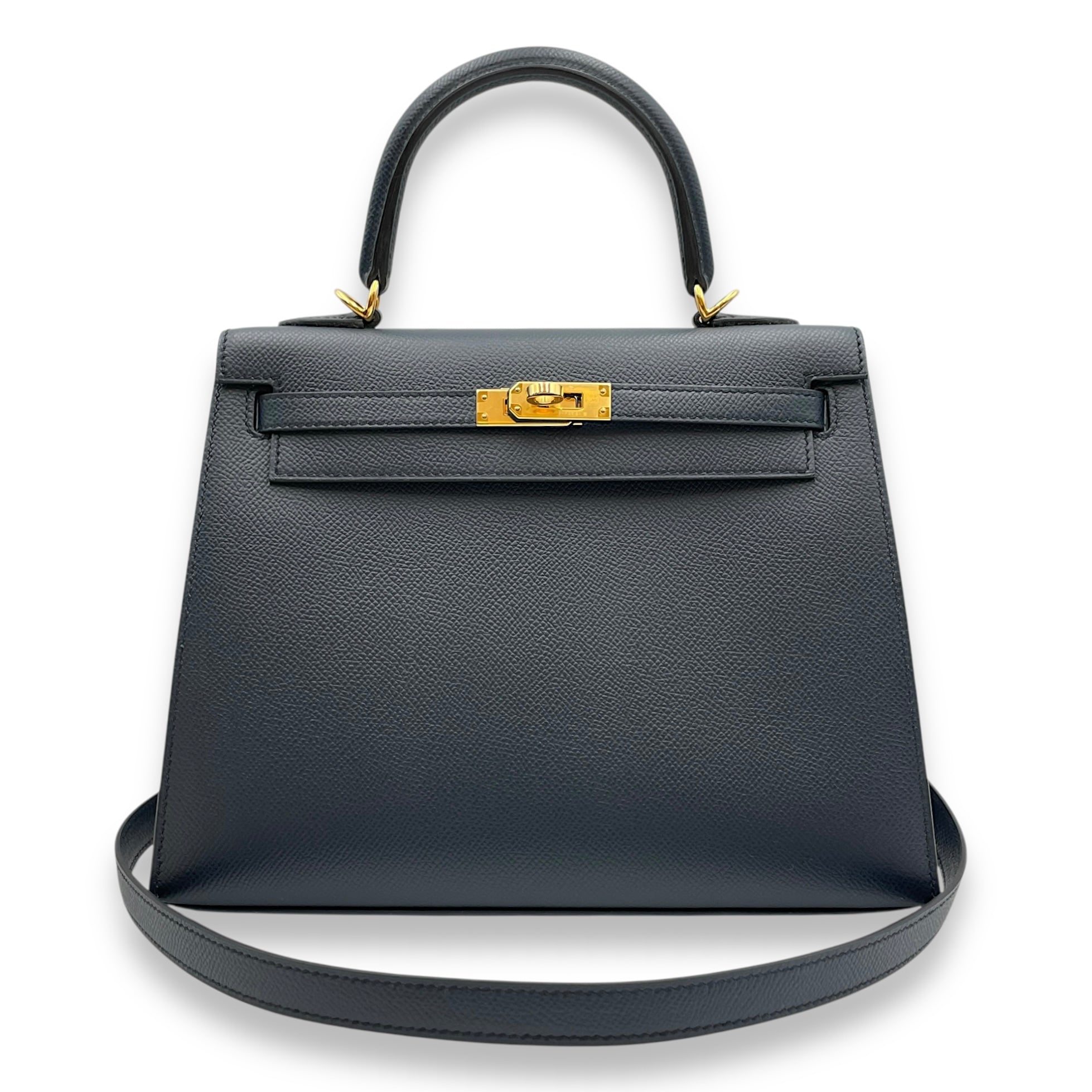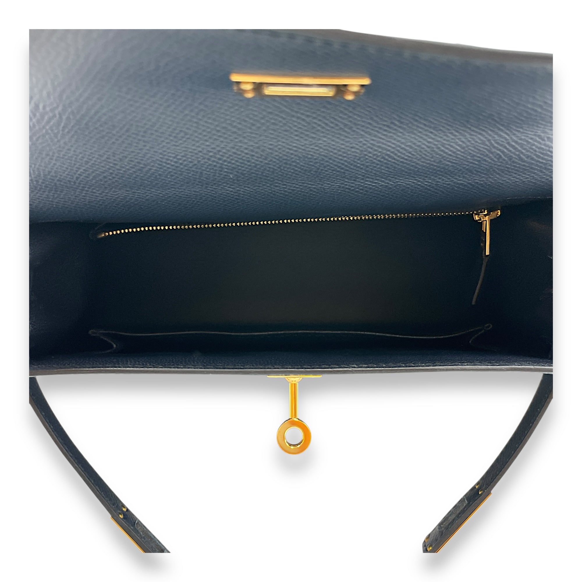 Sellier Kelly 25 Blue Indigo in Epsom, Gold hardware
