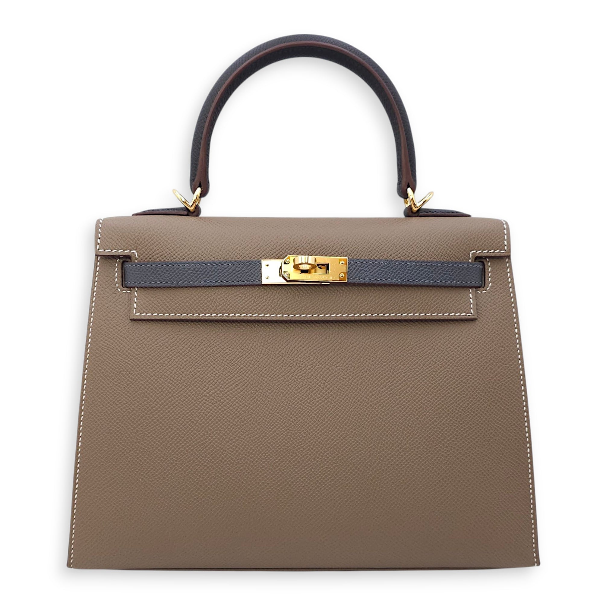 Sellier Kelly 25 Etoupe/Ardoise/Black in Epsom, Gold hardware