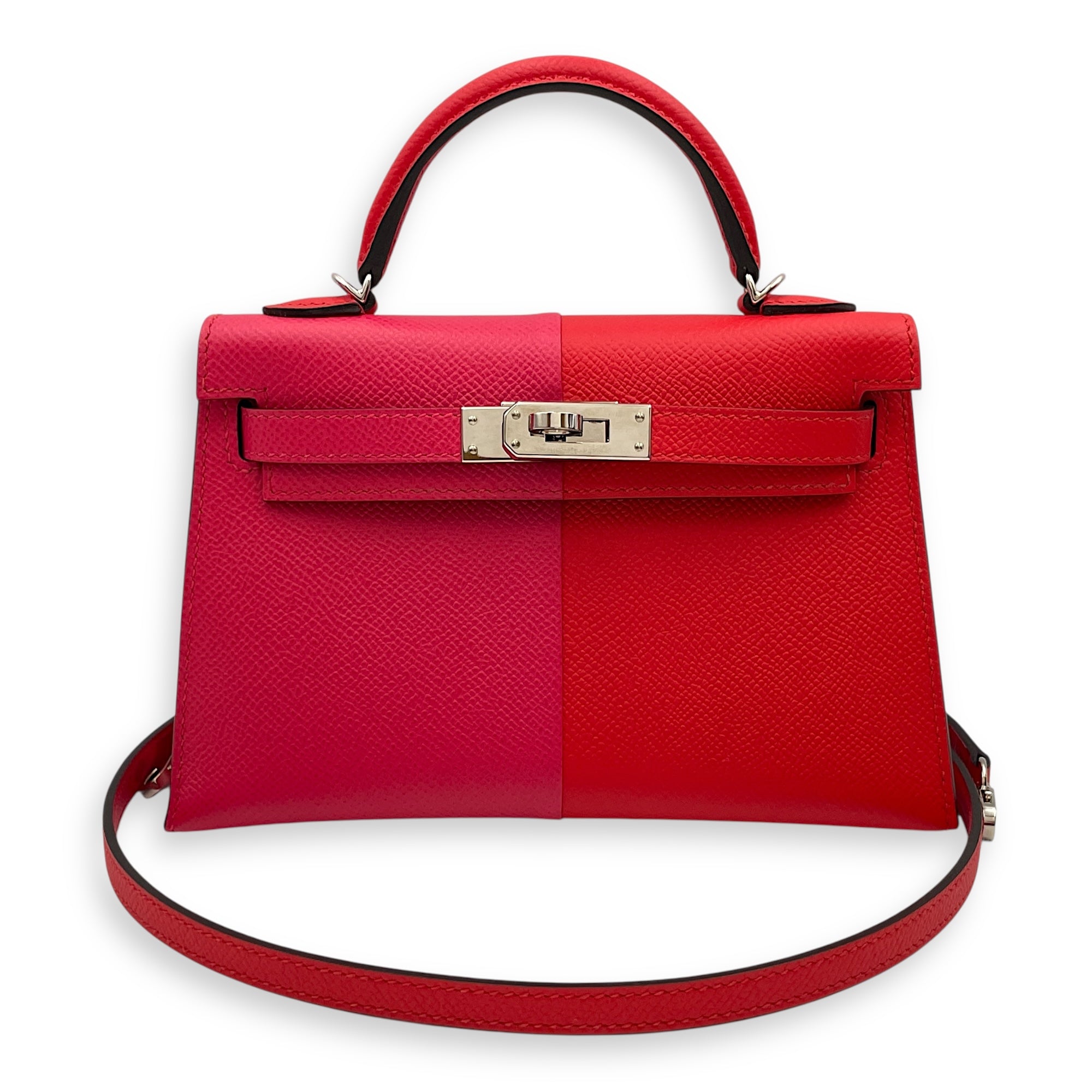 Sellier Kelly Casaque 20 Rouge De Coeur/Rose Extrteme/Blue Zanzibar in Epsom, Palladium hardware