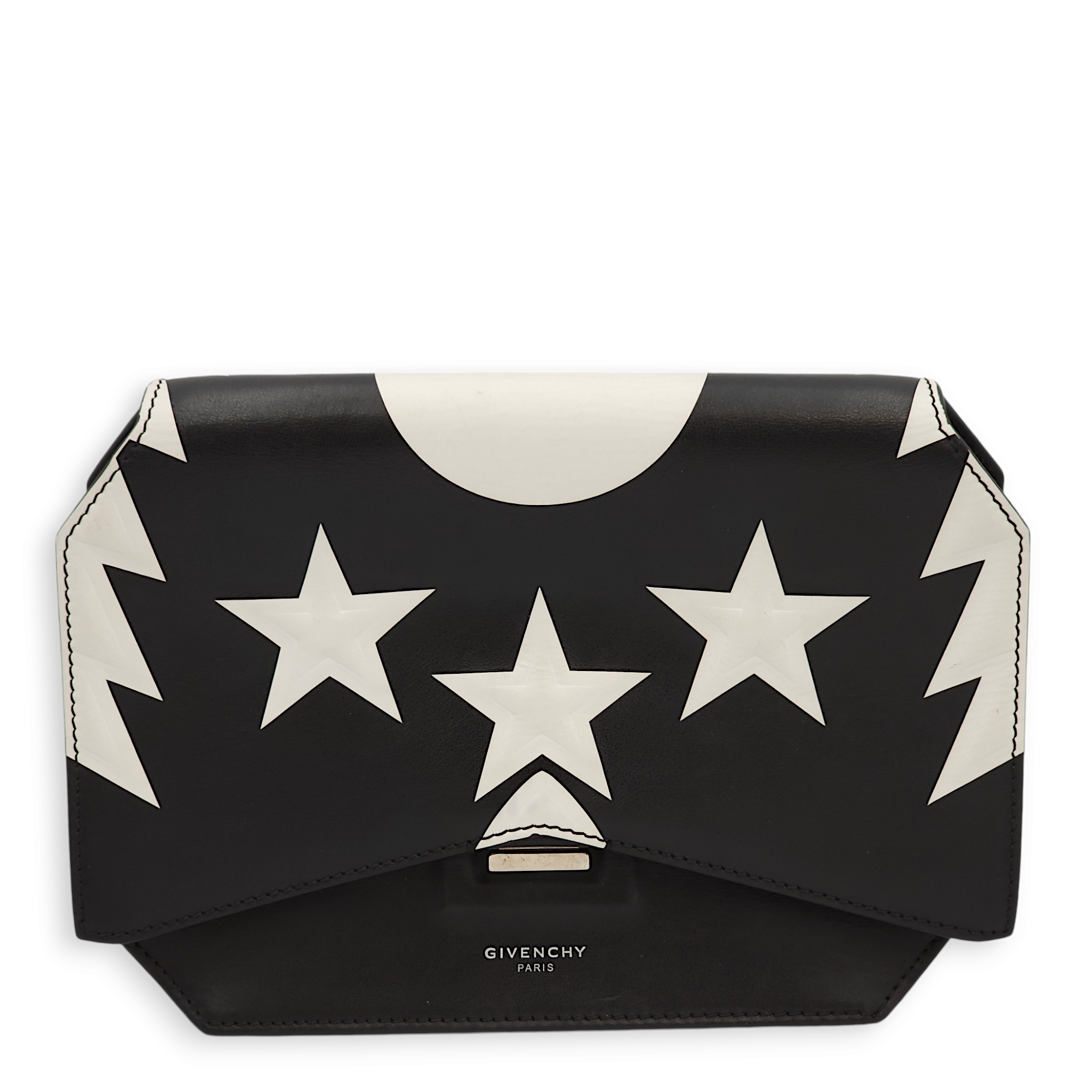 Stars Wings Print Bow Cut Black/White Crossbody Bag in Calfskin, Palladium hardware