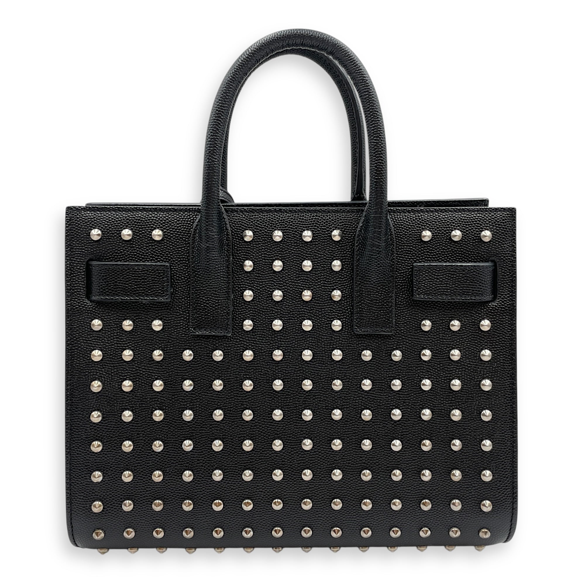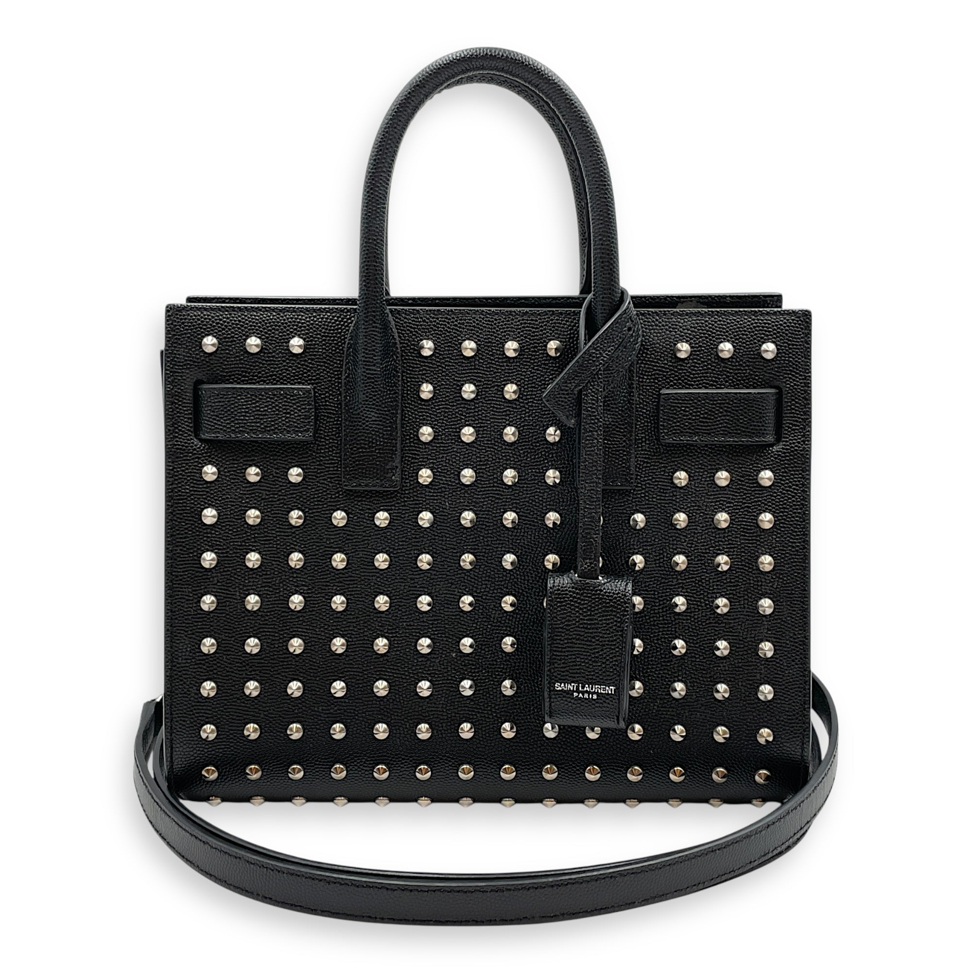 Studded Sac De Jour Nano Black Crossbody Bag in Calfskin, Silver hardware