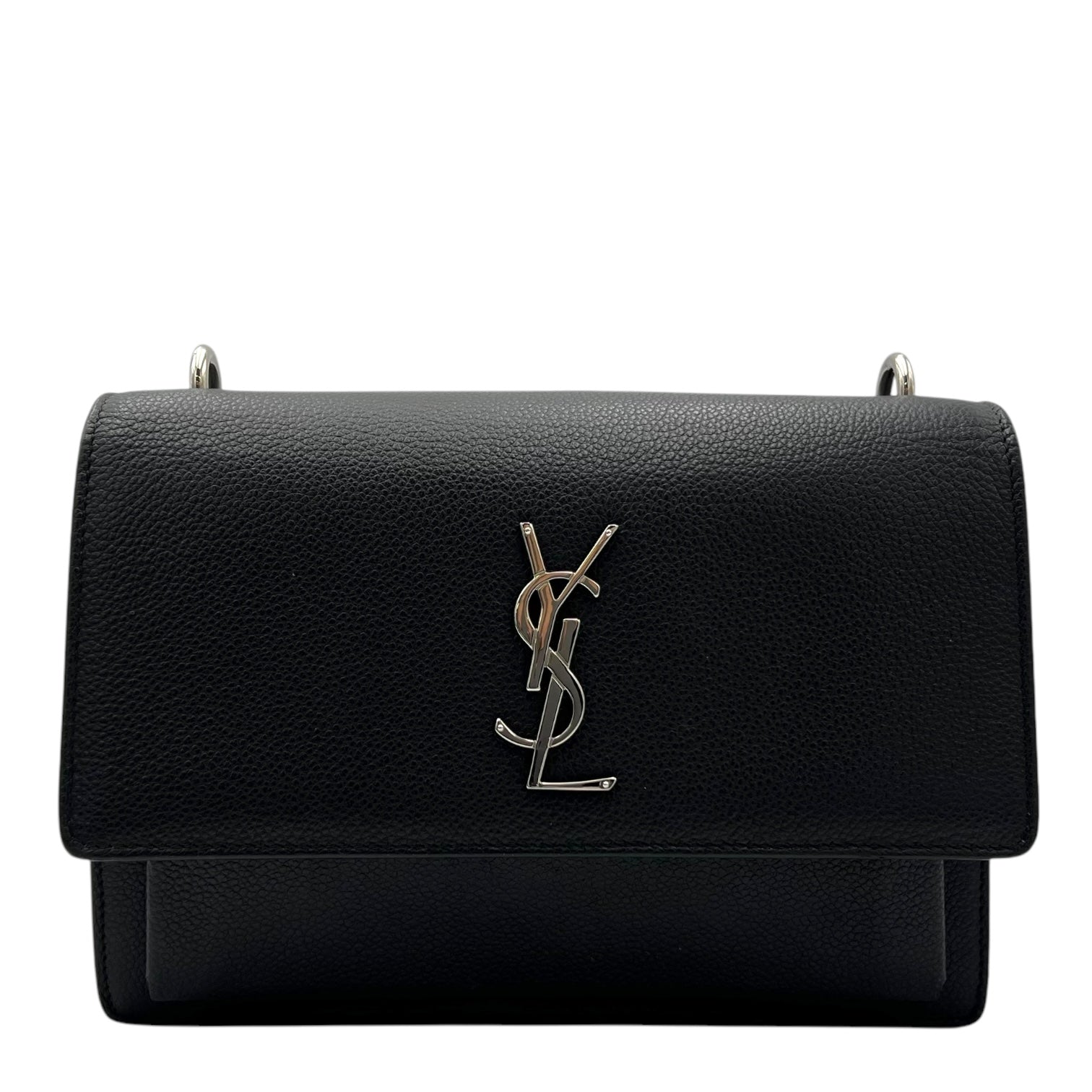 Sunset Shoulder Bag Black in Calfskin, Silver hardware