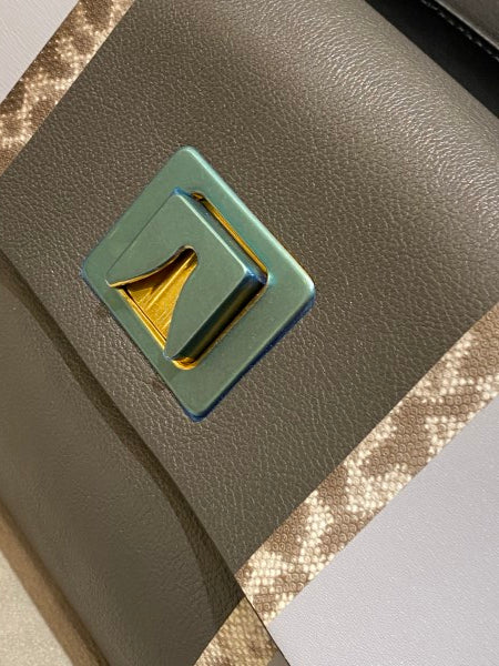 • Material: Grey/Black Leather with Snake Skin Leather Trim