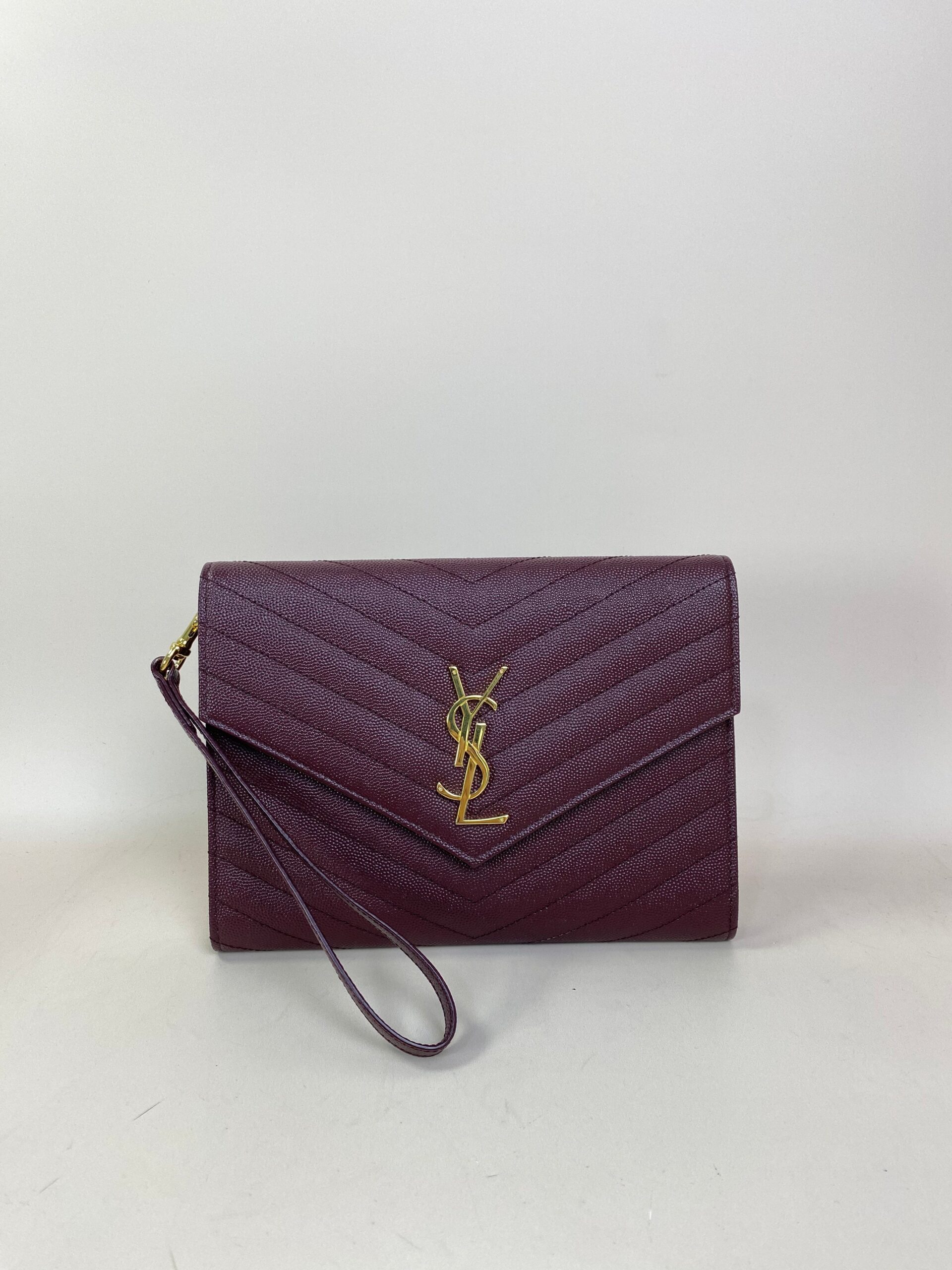 YSL Burgundy Matelasse Cassandre Flap Pouch with Holder